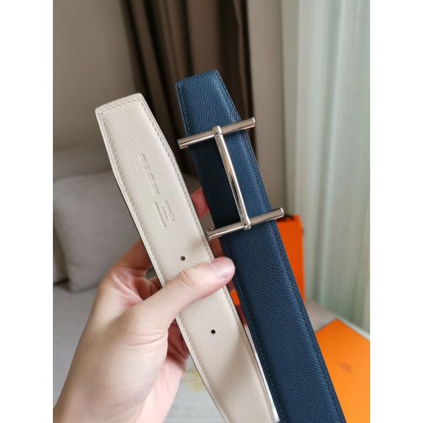 HERM H d'Ancre Reversible Belt In Blue/White Epsom Leather