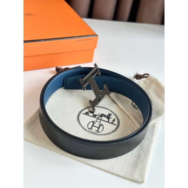 HERM H Speed Reversible Belt 32MM in Blue Jean Clemence Leather