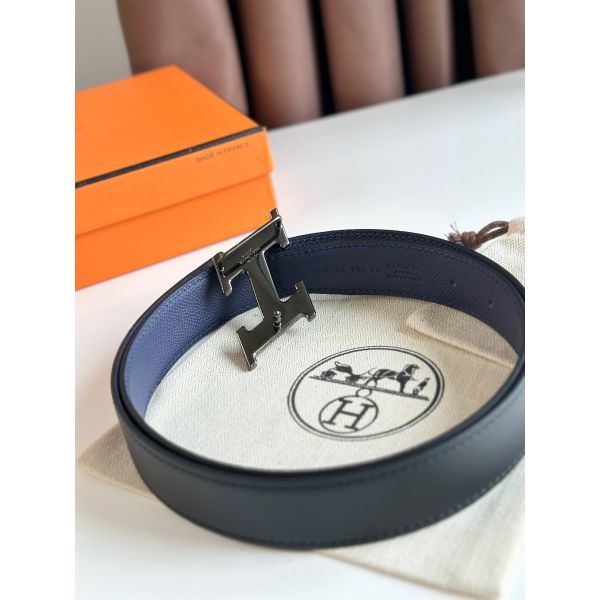 HERM H Speed Reversible Belt 32MM in Blue Saphir Epsom Calfskin
