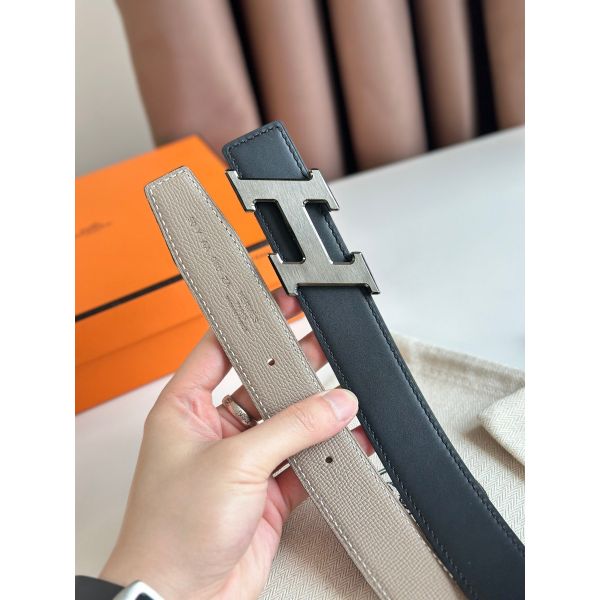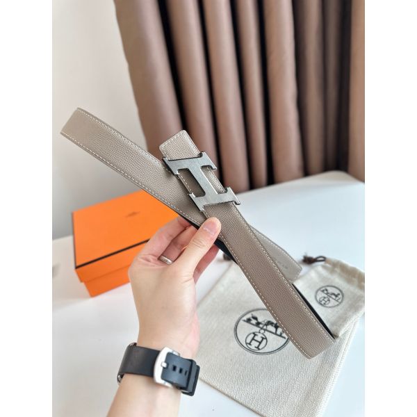 HERM H Speed Reversible Belt 32MM in Grey Epsom Calfskin