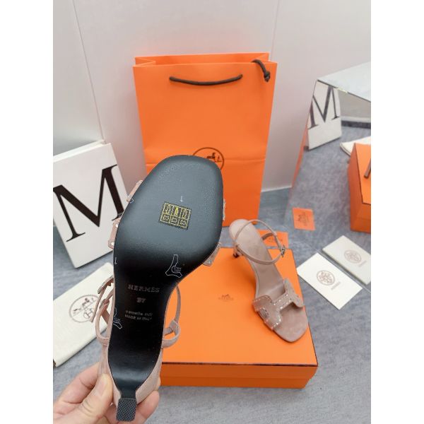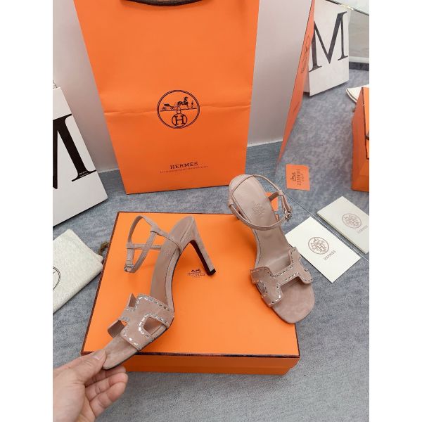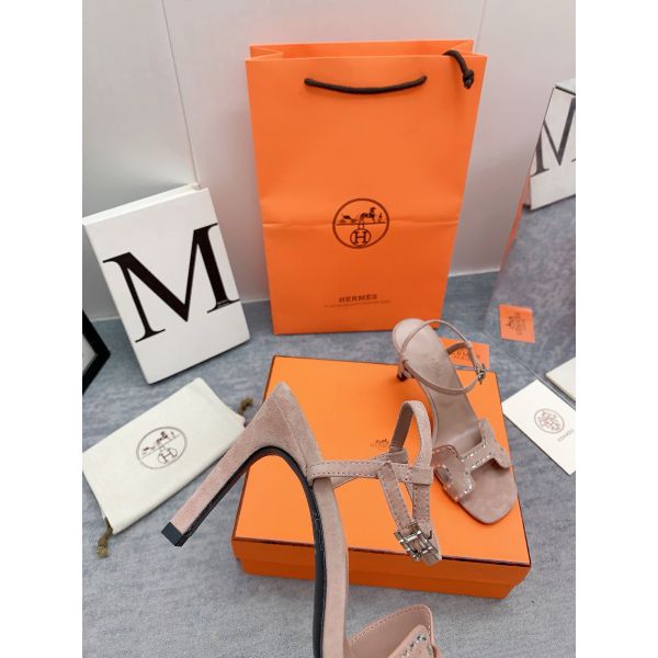 HERM Heden 80 Sandals in Beige Suede Leather with Rhinestone