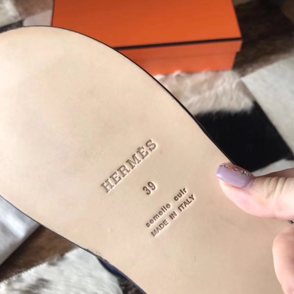 HERM Izmir Sandals In Navy Blue Clemence Leather