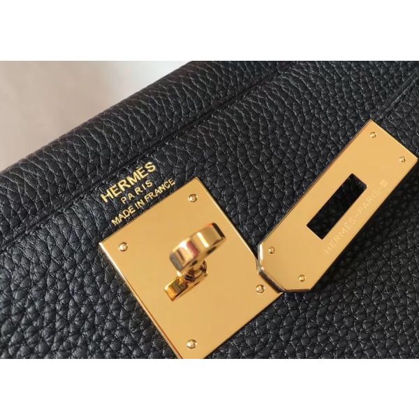 HERM Kelly 25cm Retourne Bag In Black Clemence Leather