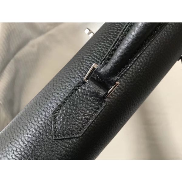 HERM Kelly Depeche 38 Briefcase In Black Calfskin