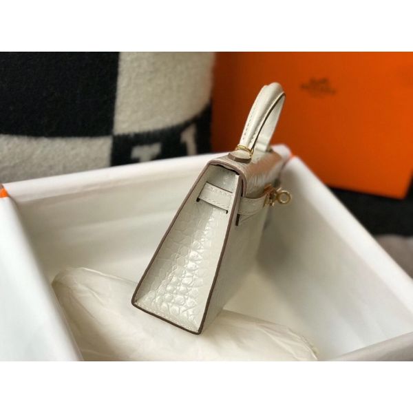 HERM Kelly Mini II Bag In Beton Embossed Crocodile Leather