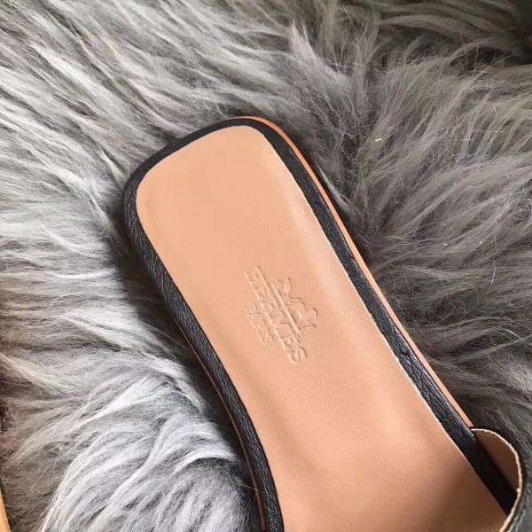 HERM Oran Sandals In Black Ostrich Leather