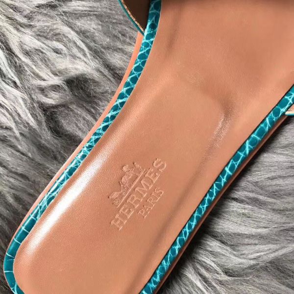 HERM Oran Sandals In Blue Paon Shiny Niloticus Crocodile