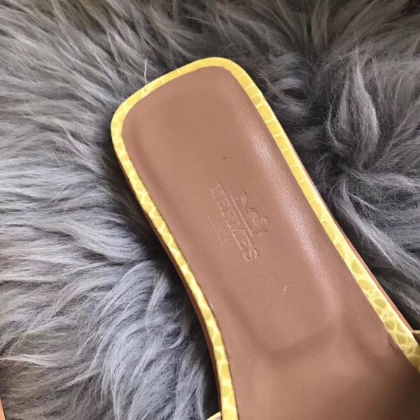 HERM Oran Sandals In Yellow Shiny Niloticus Crocodile