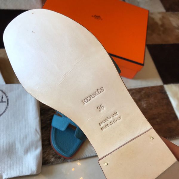 HERM Oran Slide Sandals In Blue Jean Clemence Leather