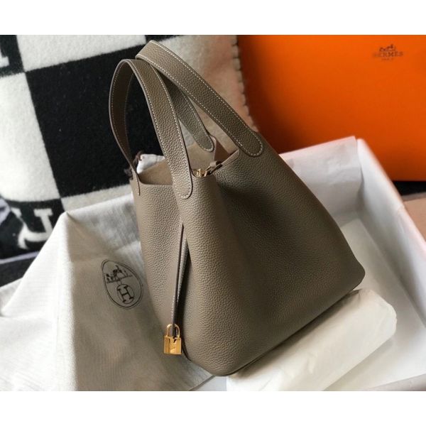 HERM Picotin Lock 22 Bag In Taupe Clemence Leather