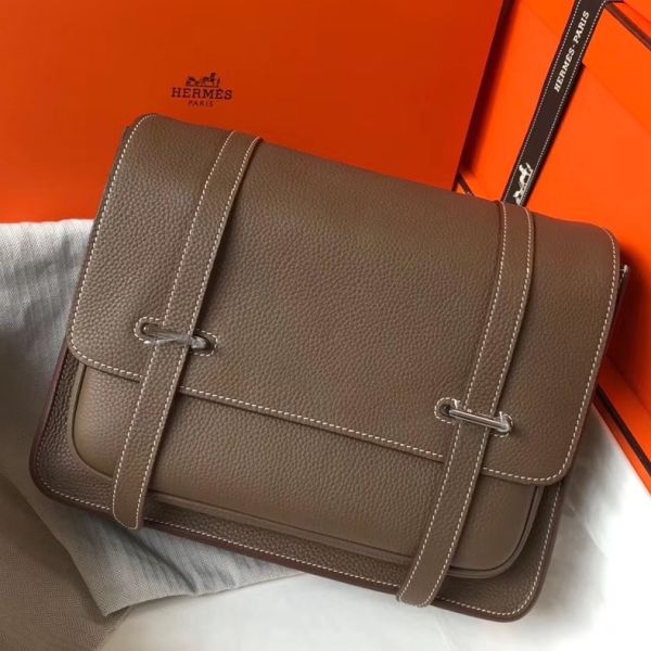HERM Steve 35 Messenger Bag In Taupe Clemence Calfskin