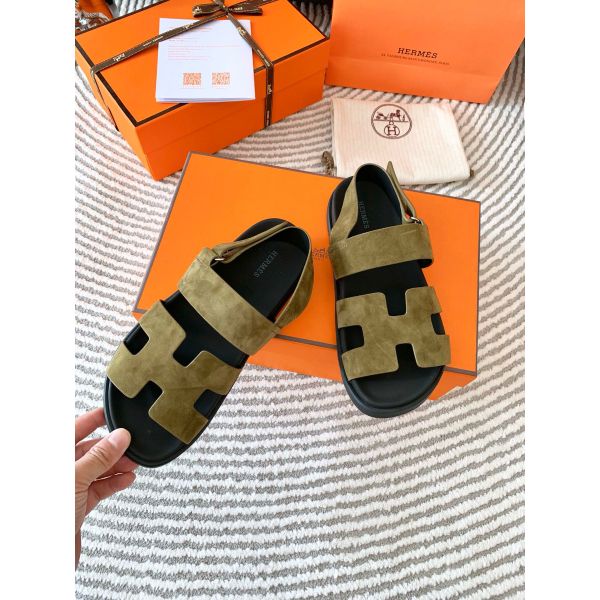 HERM Men's Genius Sandals In Green Suede Calfskin