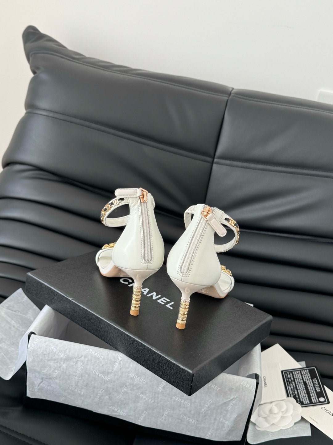 HIGH HEEL 7.5 MM SANDAL IN WHITE SHEEPSKIN WITH STICKERS