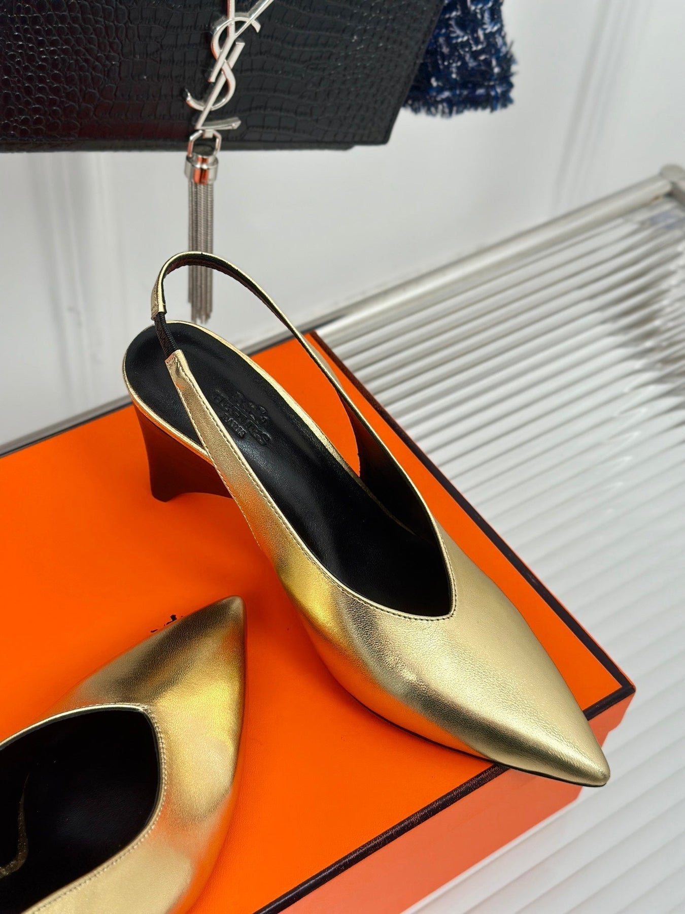 HIGH HEEL 75 MM POINTED- TOE SANDAL IN GOLD CALFSKIN