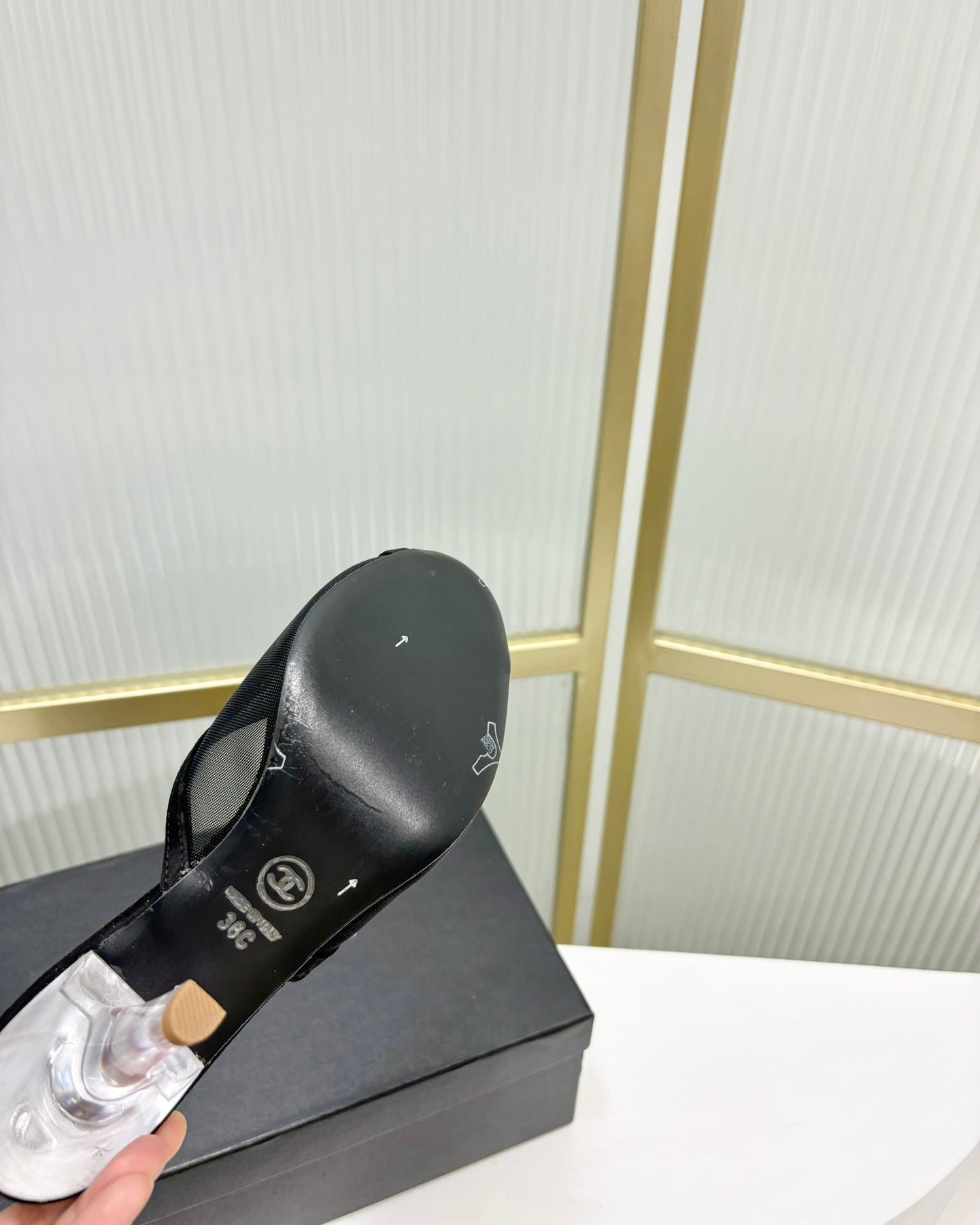 HIGH HEEL PEEP TOE IN BLACK BREATHABLE MESH