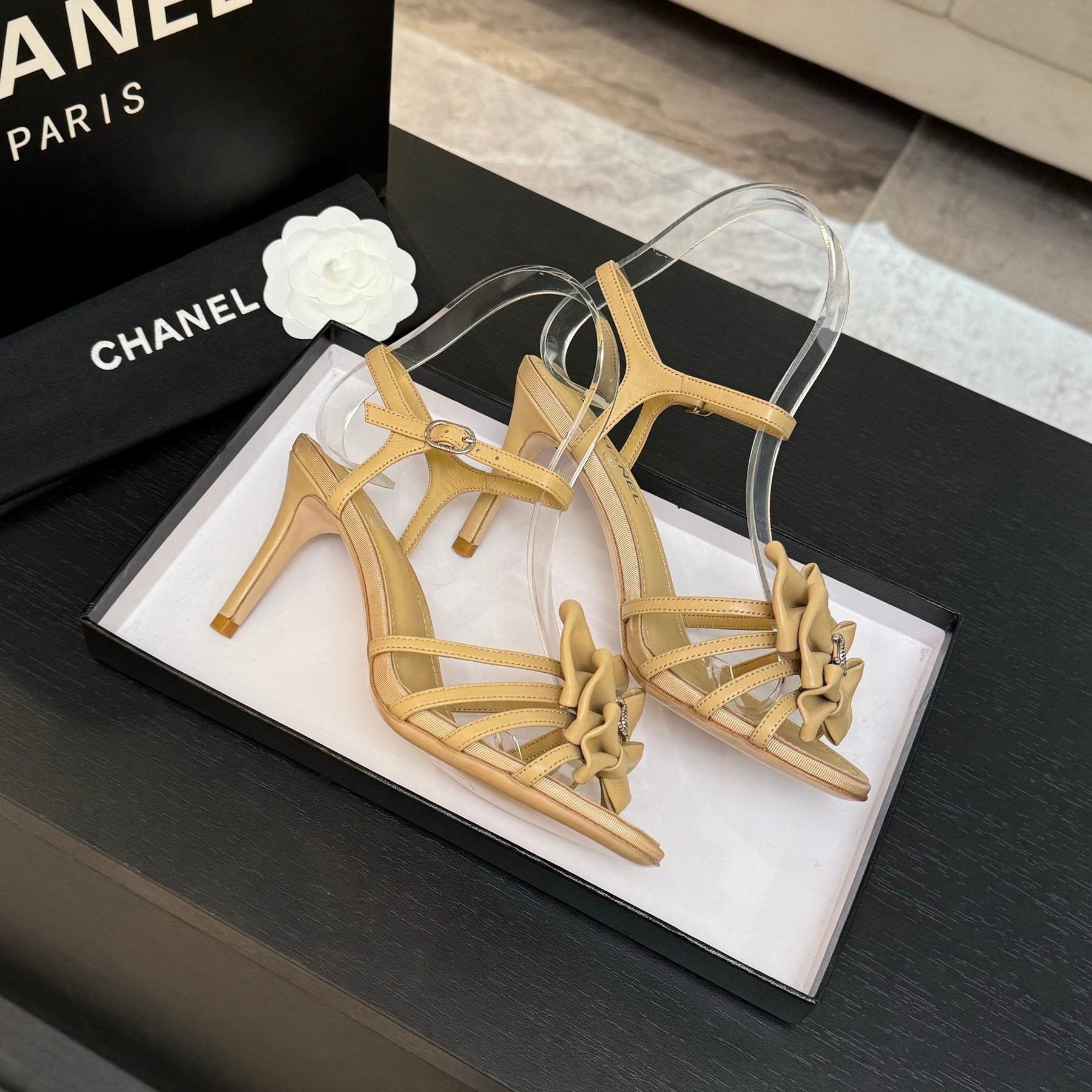 HIGH HEEL SANDAL WITH BOW IN BEIGE LAMBSKIN