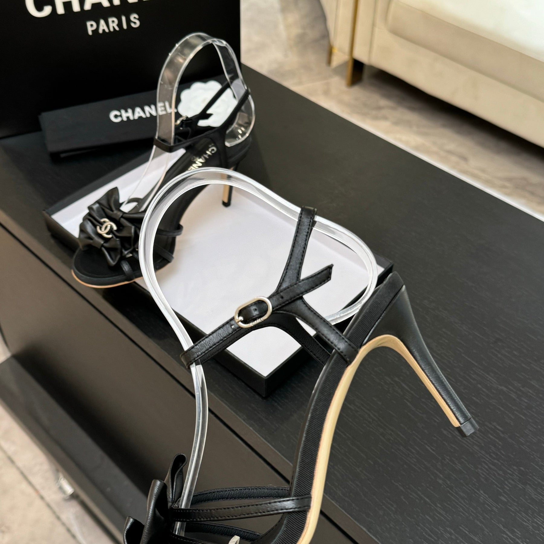 HIGH HEEL SANDAL WITH BOW IN BLACK LAMBSKIN