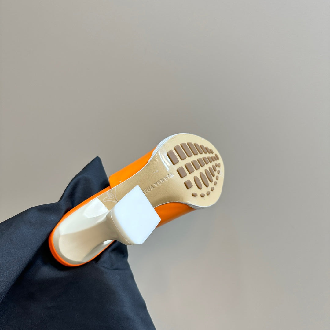 HIGH MULE 95 MM IN VIVID ORANGE CALFSKIN