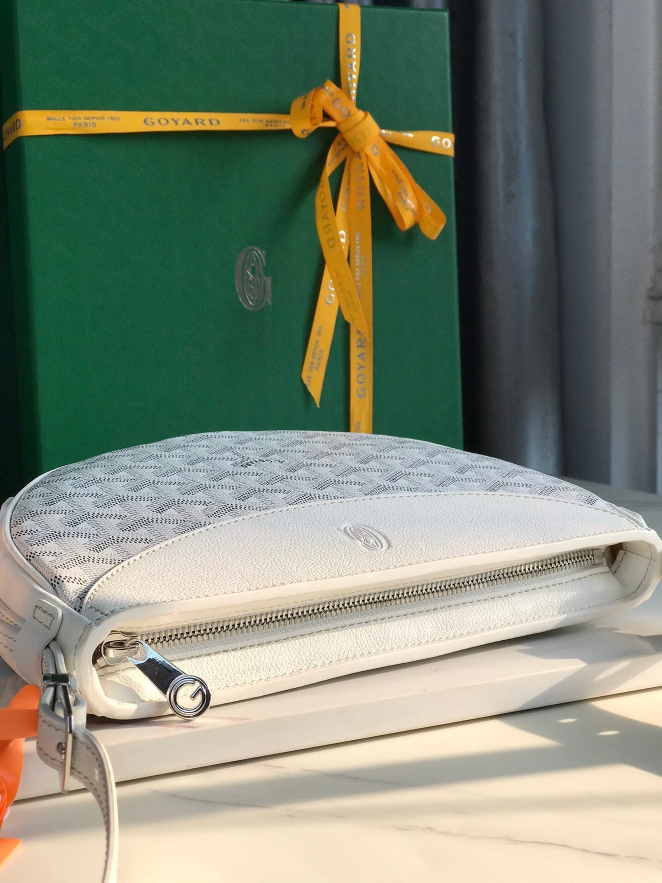HIRONDELLE BAG 25 IN WHITE LAMBSKIN AND GOYARDINE CANVAS