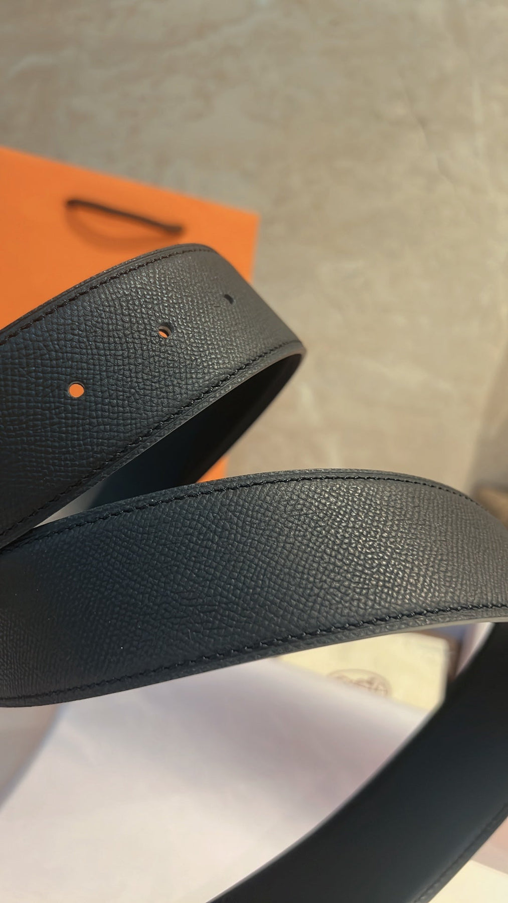 HM CONSTANCE BELT BUCKLE & REVERSIBLE BLACK LEATHER STRAP 42MM GOLD HARDWARE