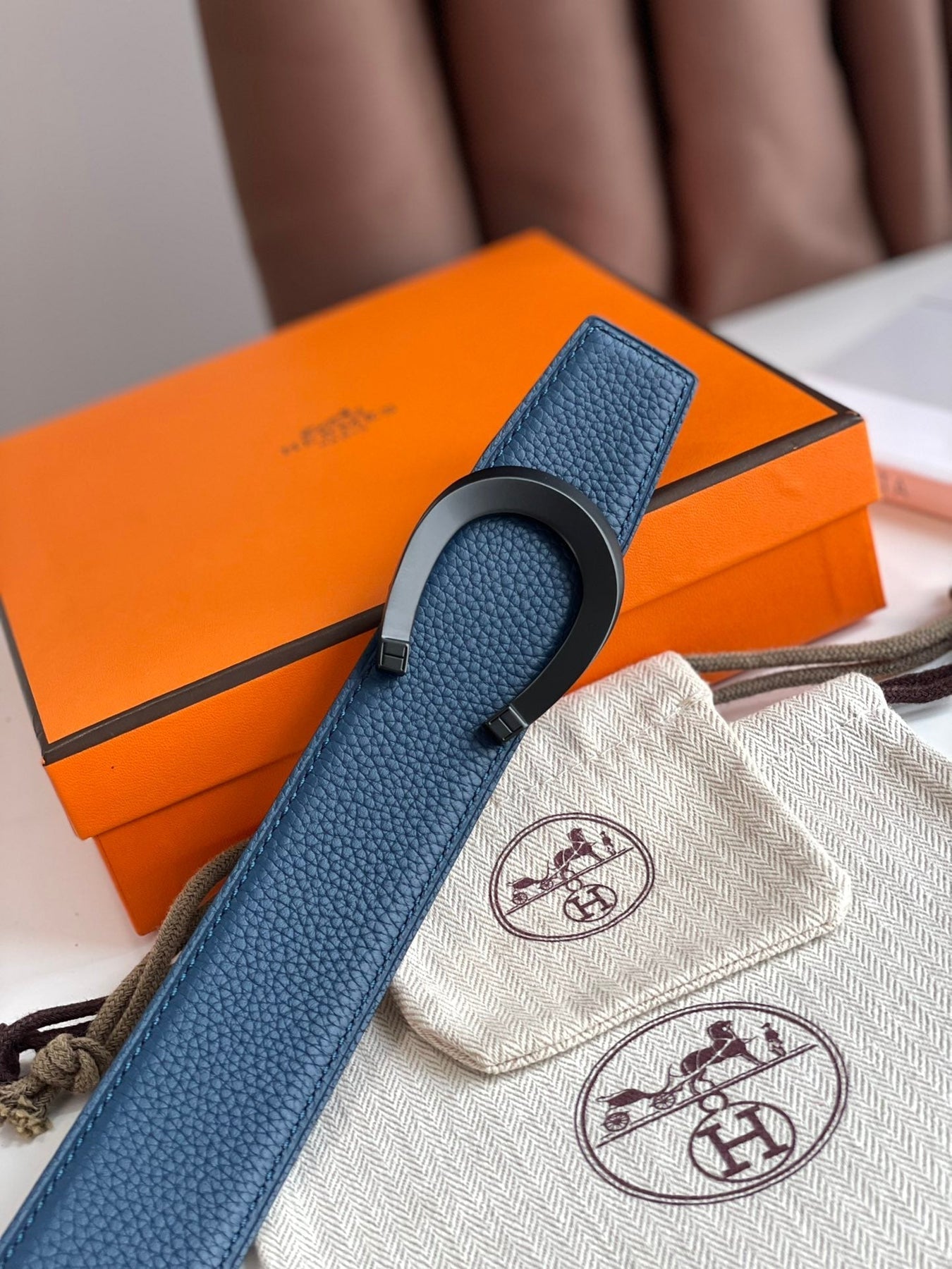 HM LUCK BELT BUCKLE & REVERSIBLE BLACK AND NAVY BLUE LEATHER STRAP 38MM