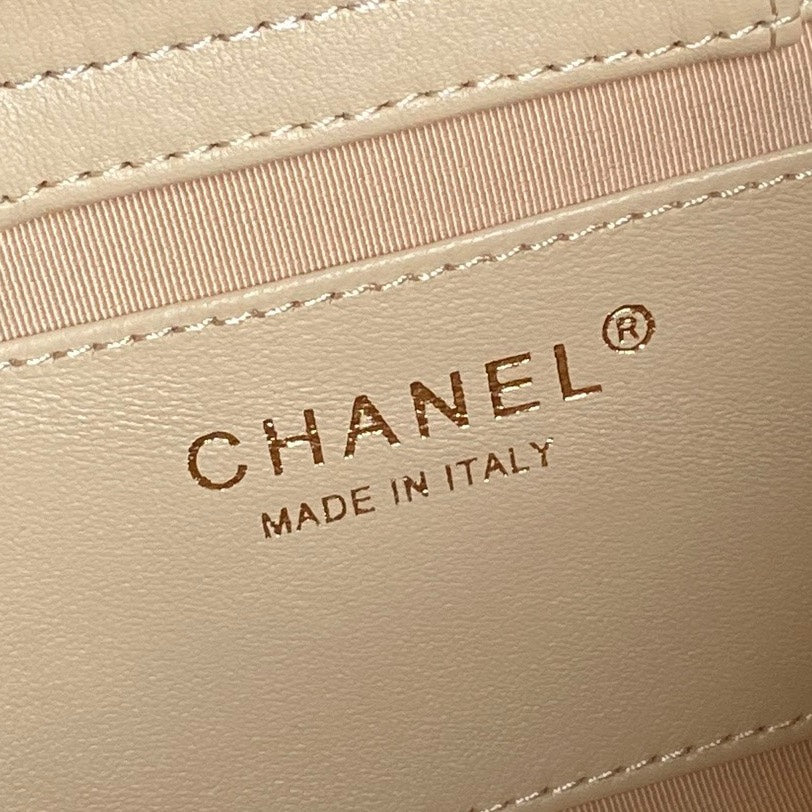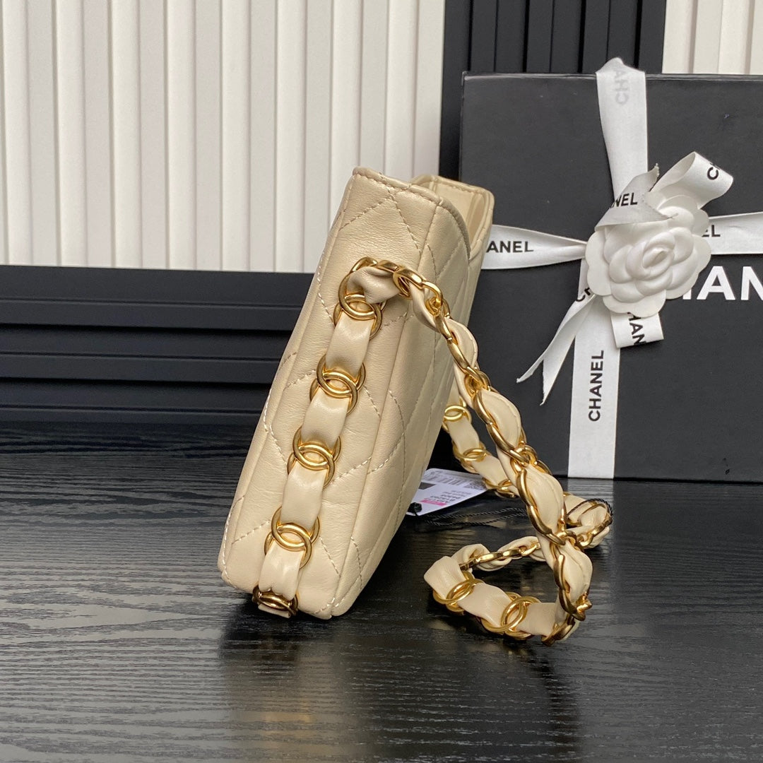 HOBO BAG 24 IN BEIGE CALFSKIN GOLD DOUBLE C THICK CHAIN