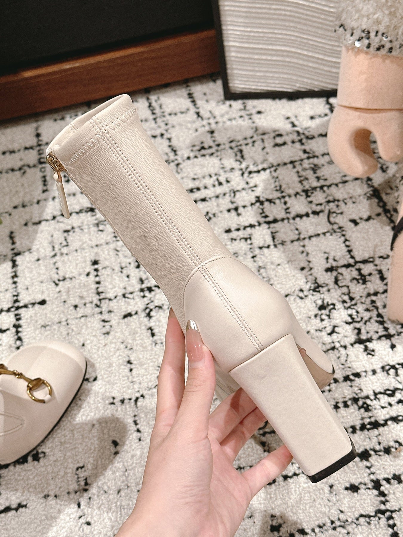 HORSEBIT ANKLE BOOTS 9.5CM IN WHITE SHEEPSKIN