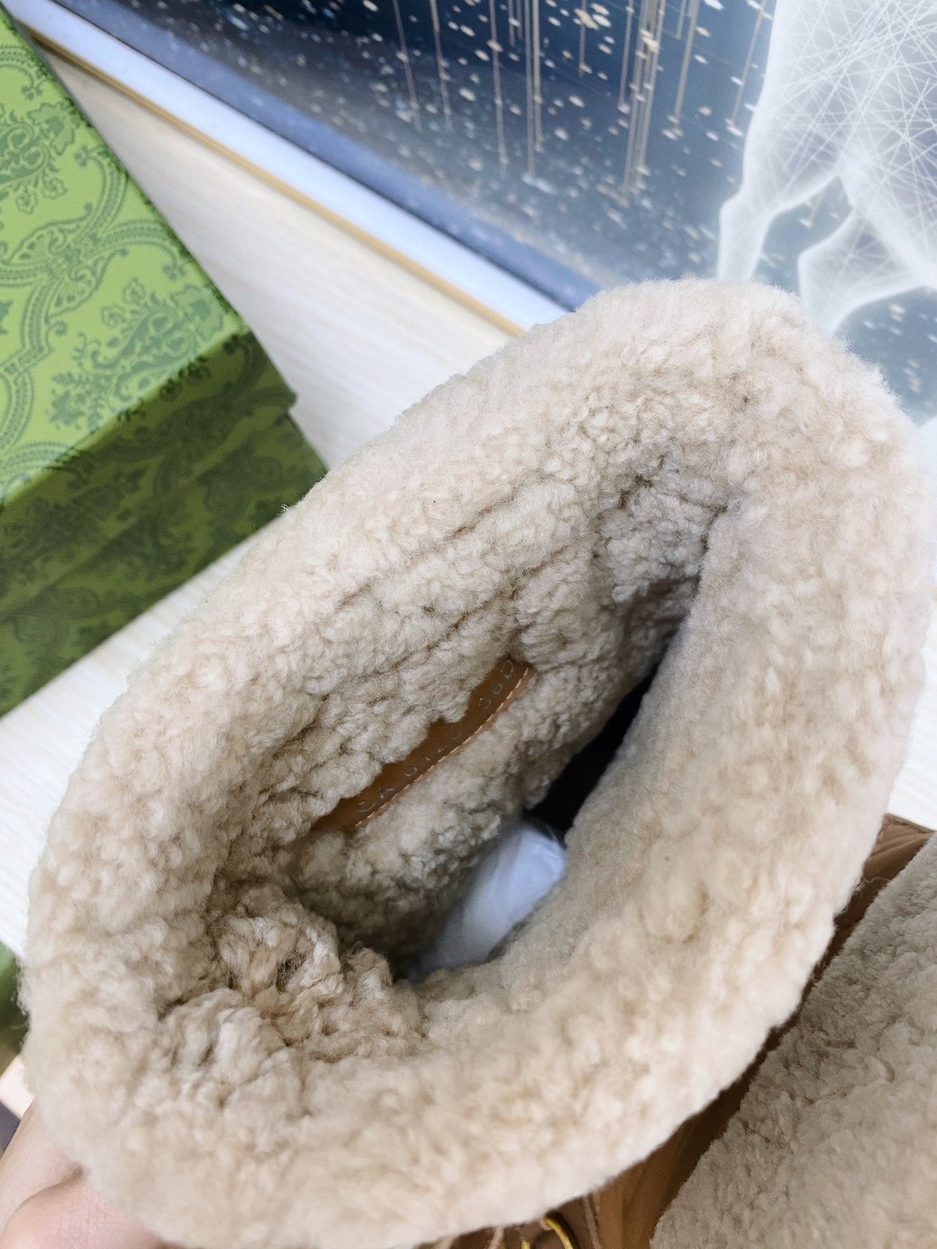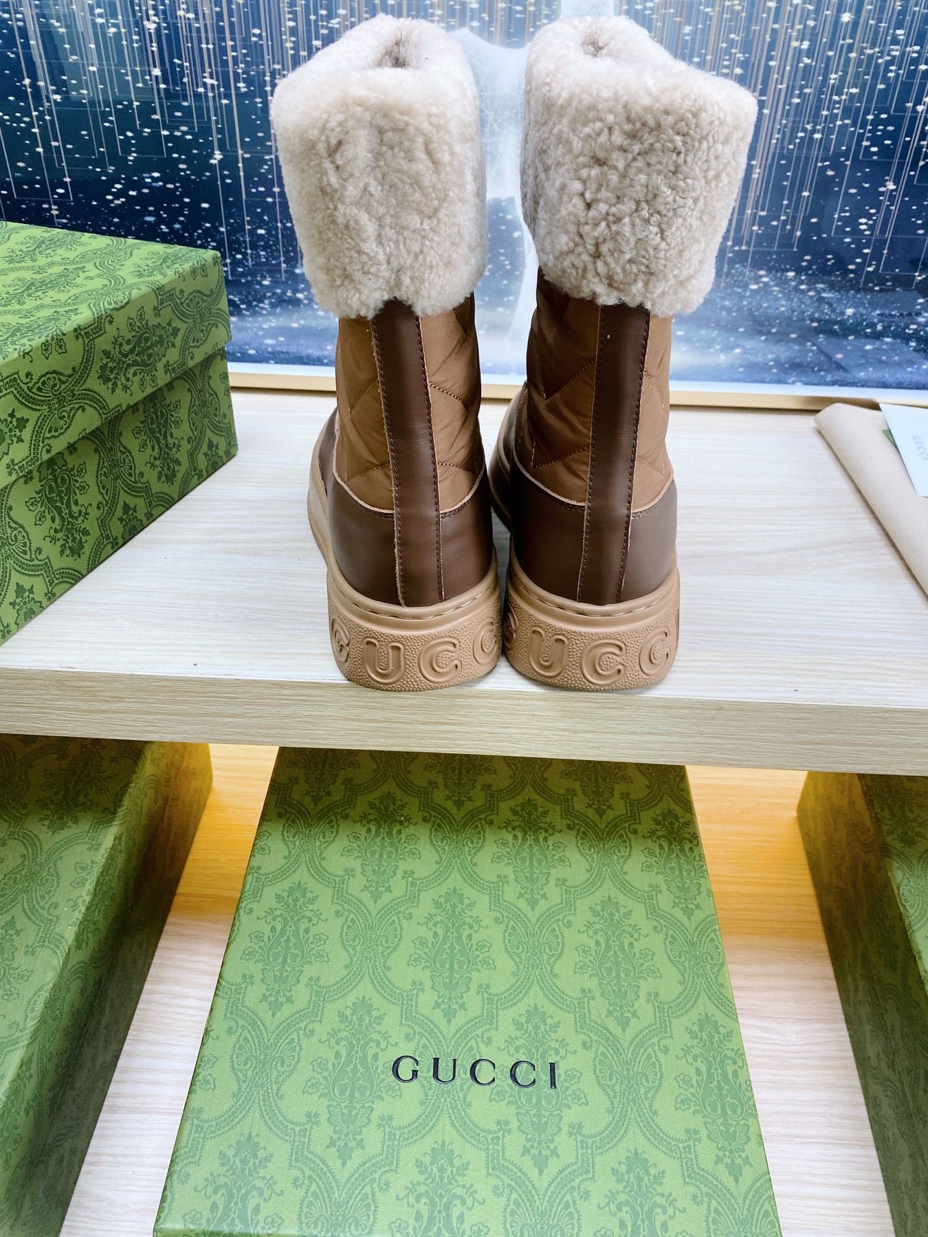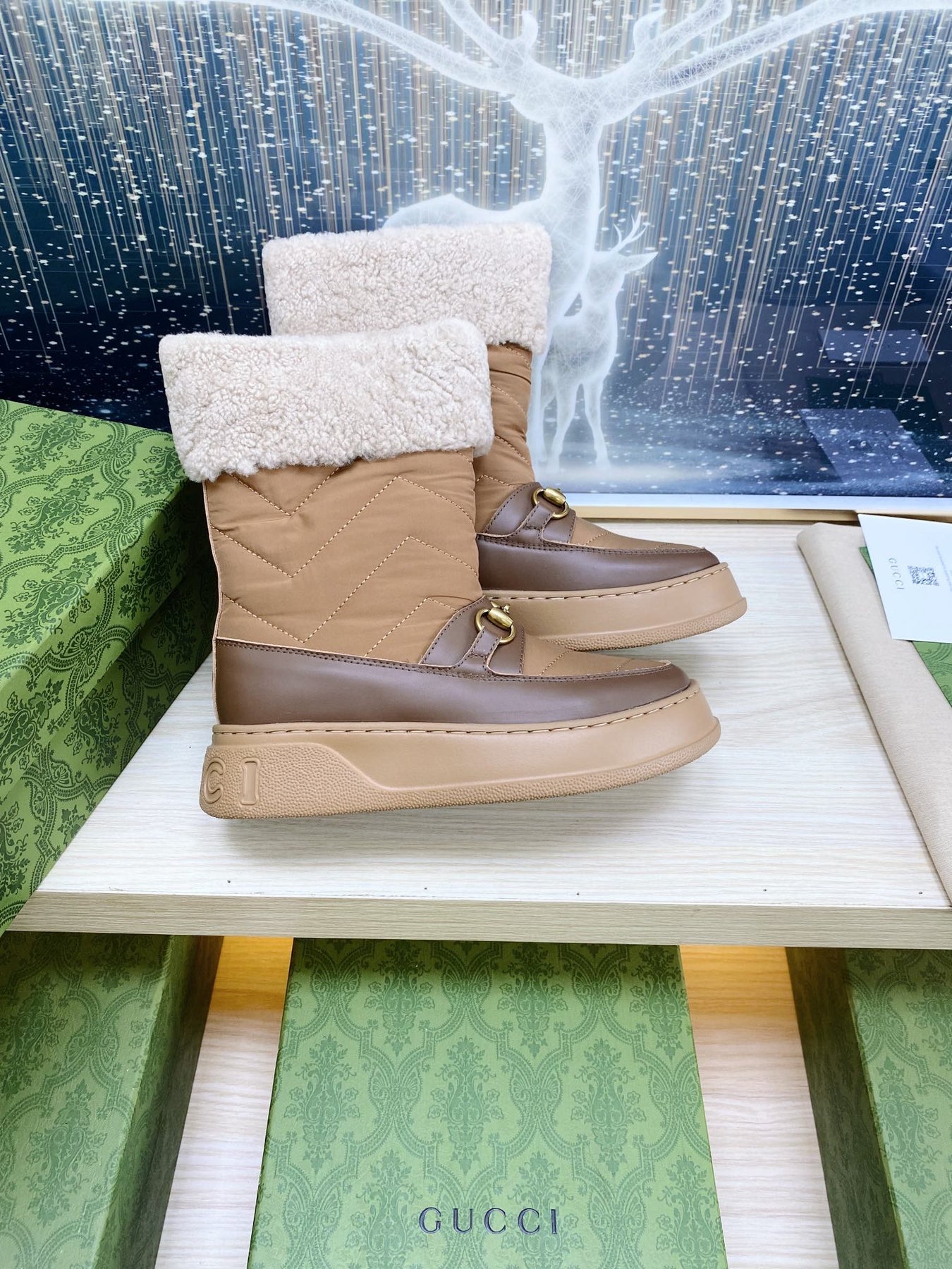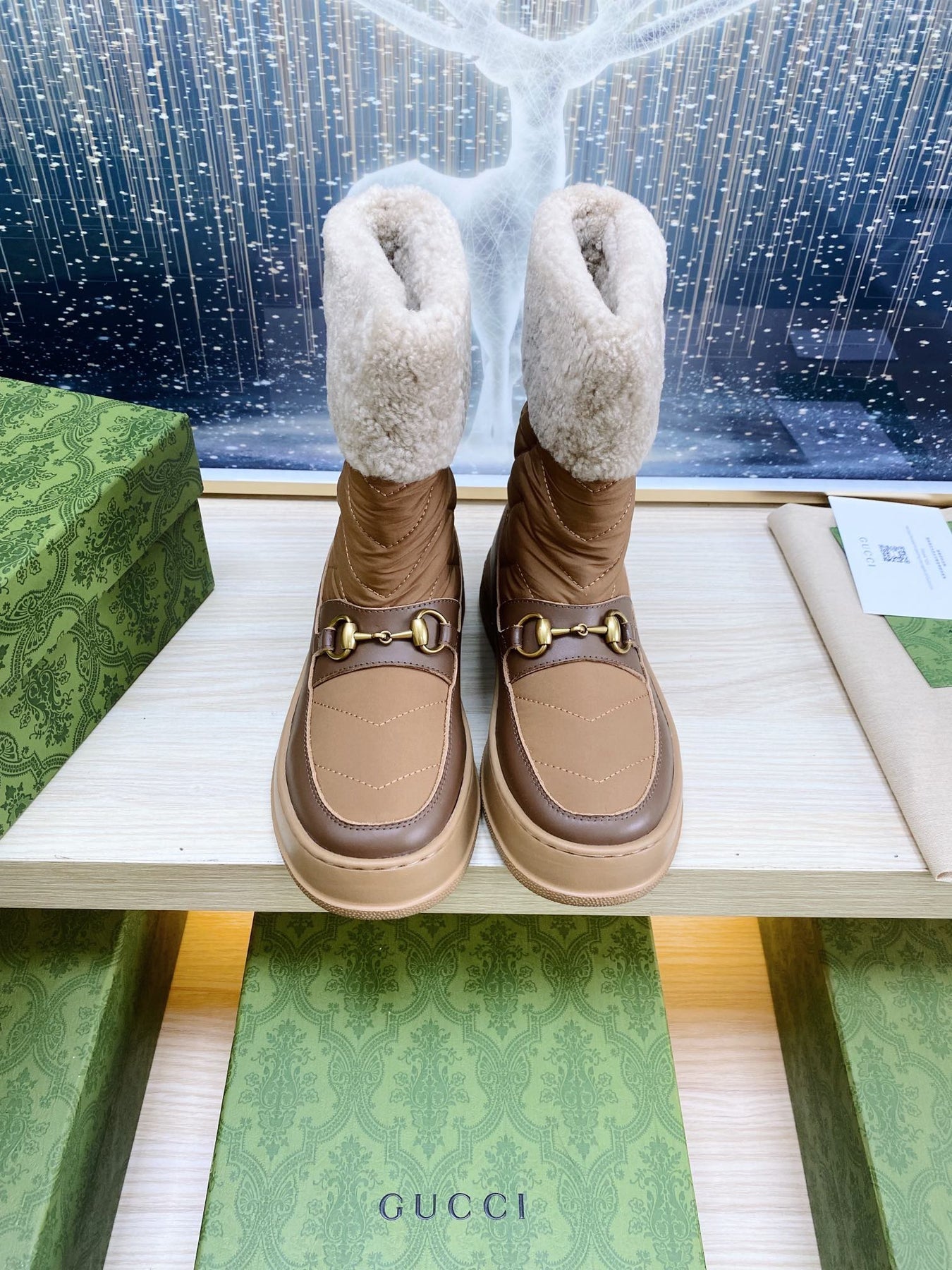 HORSEBIT ANKLE BOOTS WITH MERINO TRIM IN BROWN NYLON MIX CALFSKIN
