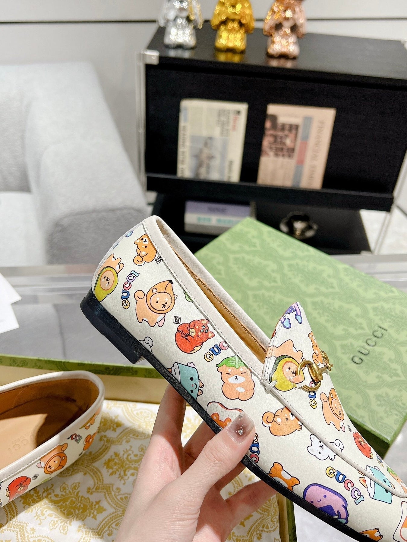 HORSEBIT LOAFER WITH CUTE ANIMAL PRINT IN WHITE CALFSKIN