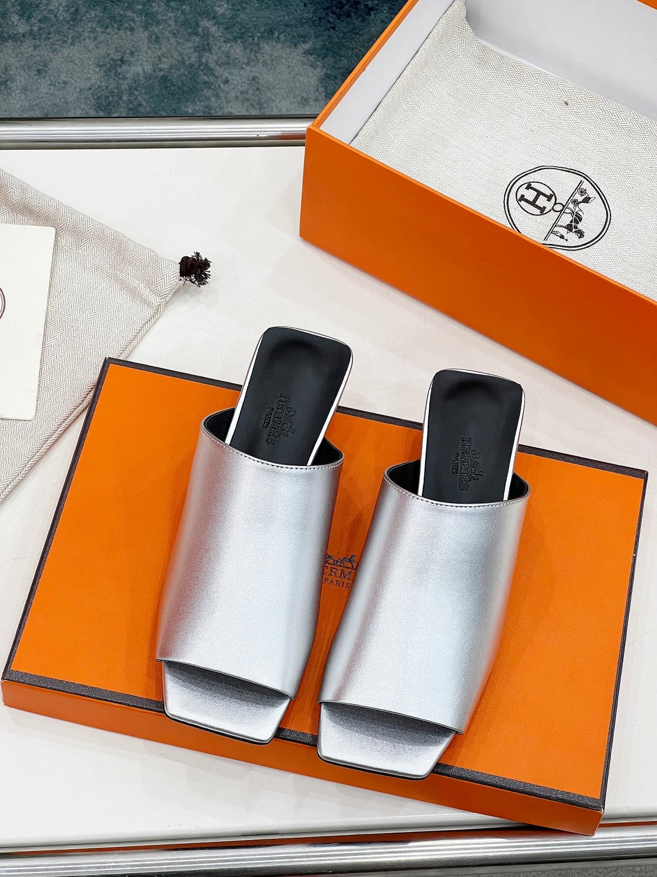 IDOLE SANDAL IN SILVER CALFSKIN