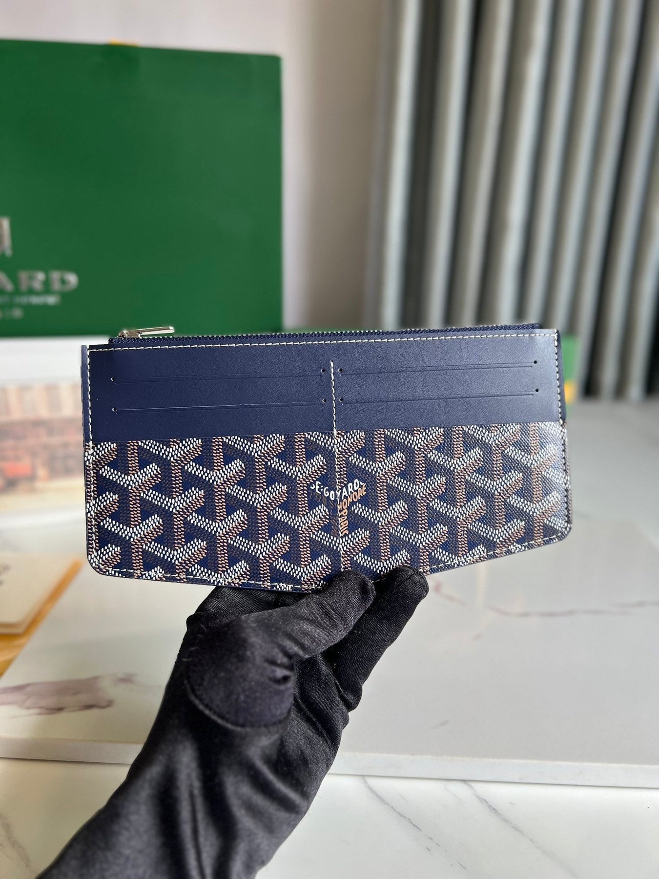 INSERT LOUISE 21 IN GUNPOWDER BLUE GOYARDINE CANVAS