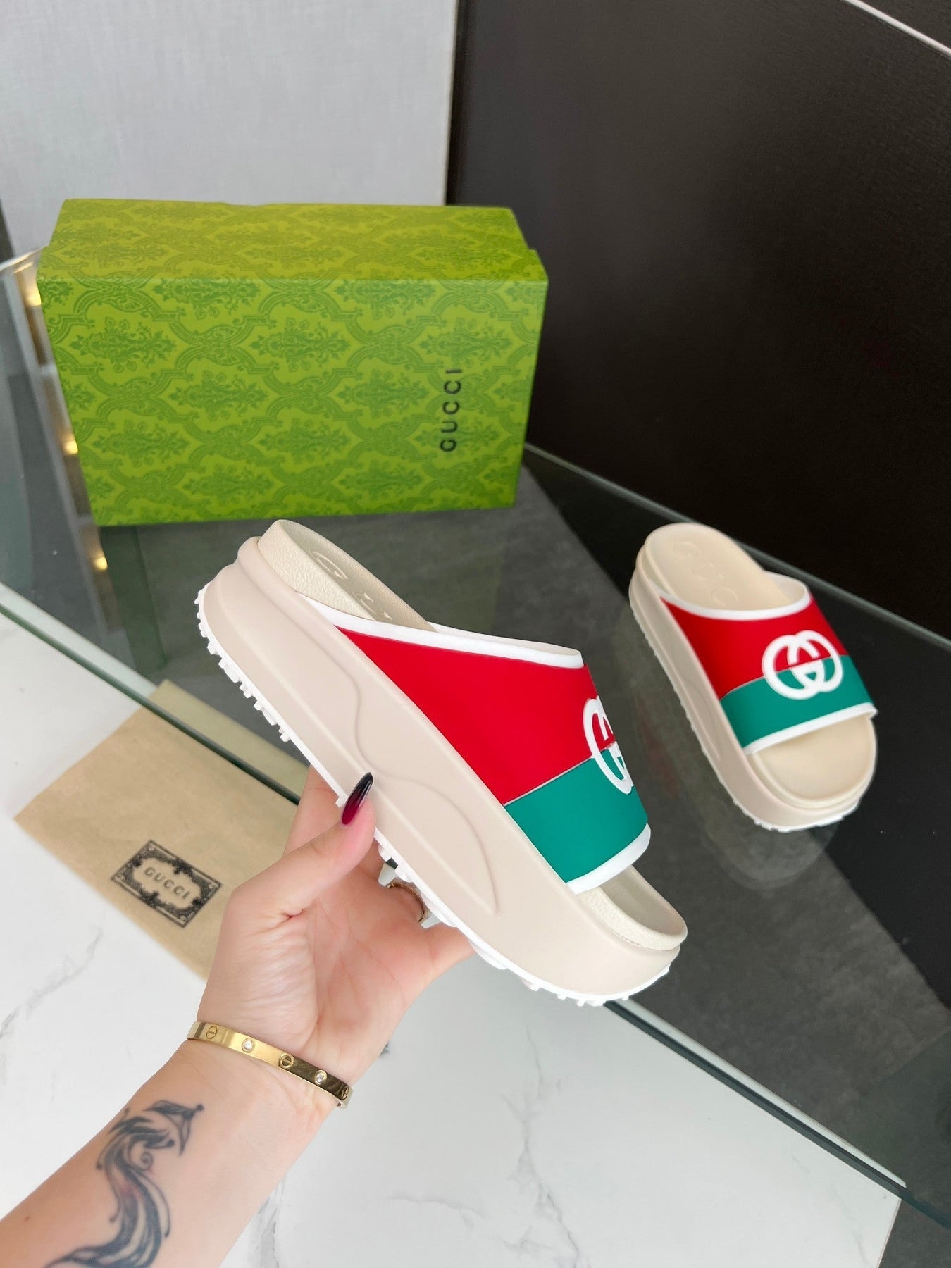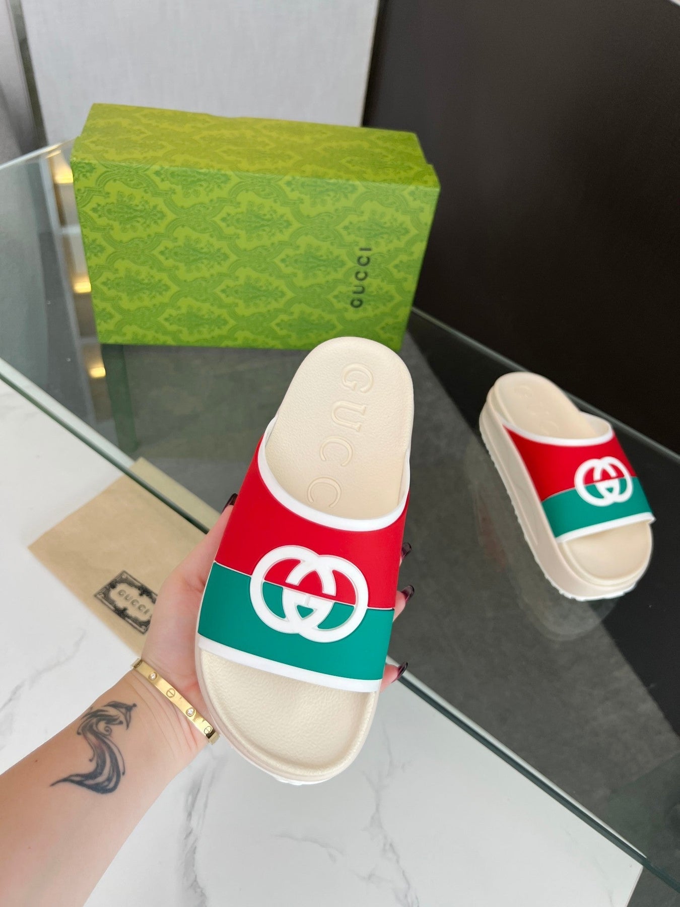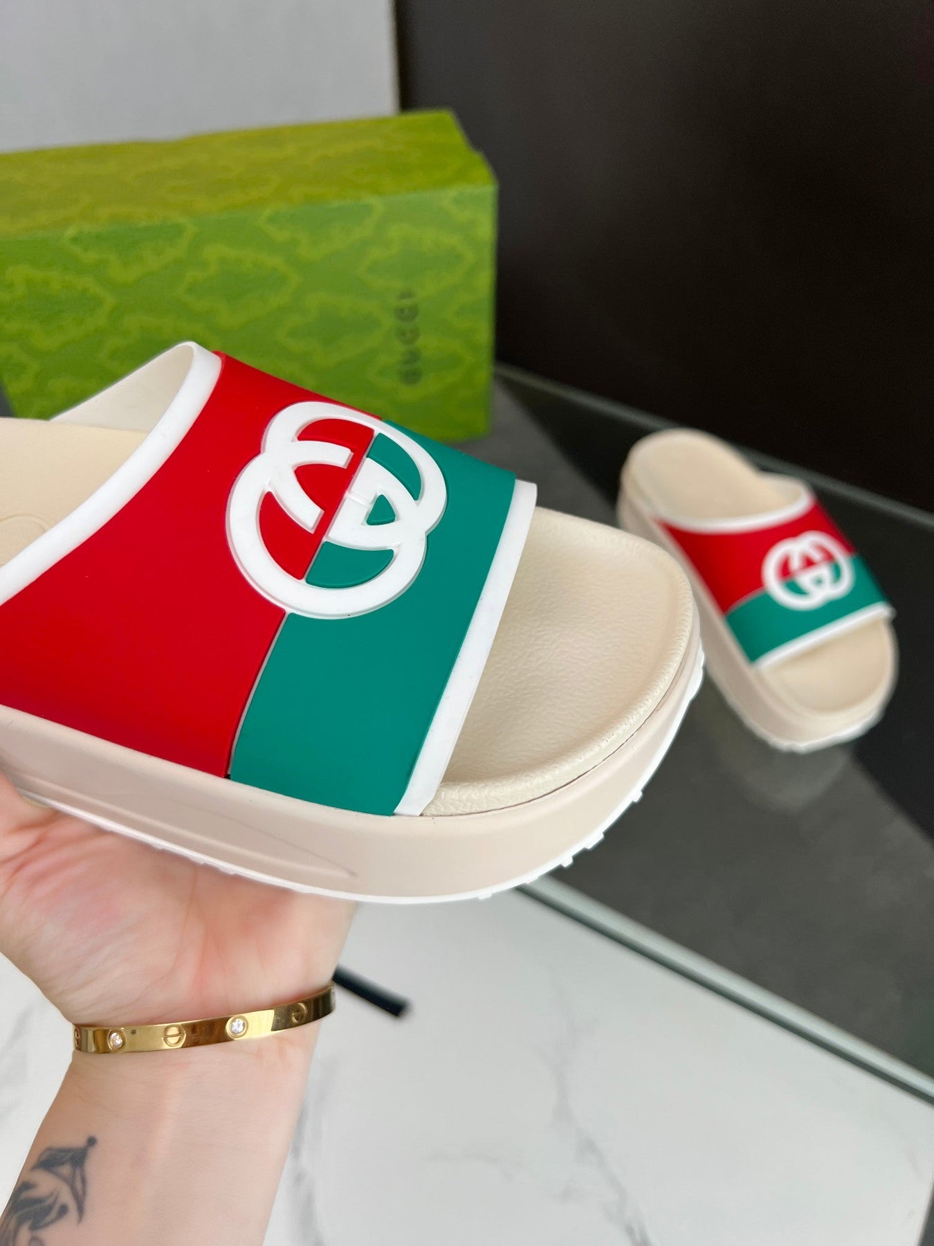 INTERLOCKING G SLIDE SANDAL IN WHITE MIX COLORFUL IMPORTED TPU
