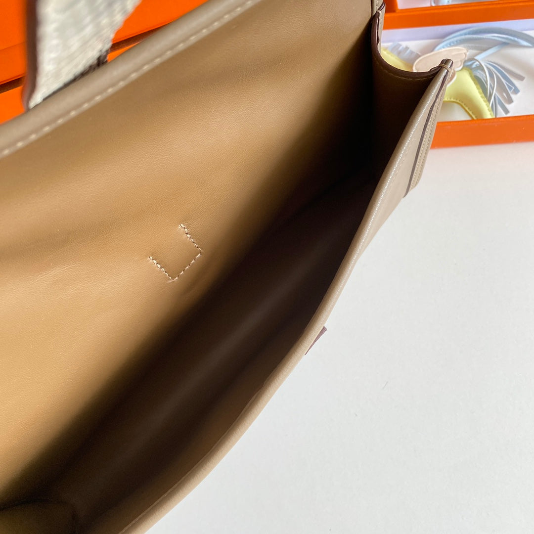 JIGE ELAN 29 CLUTCH IN CHOCOLATE BROWN CALFSKIN WITH WHTE LIZARD SKIN