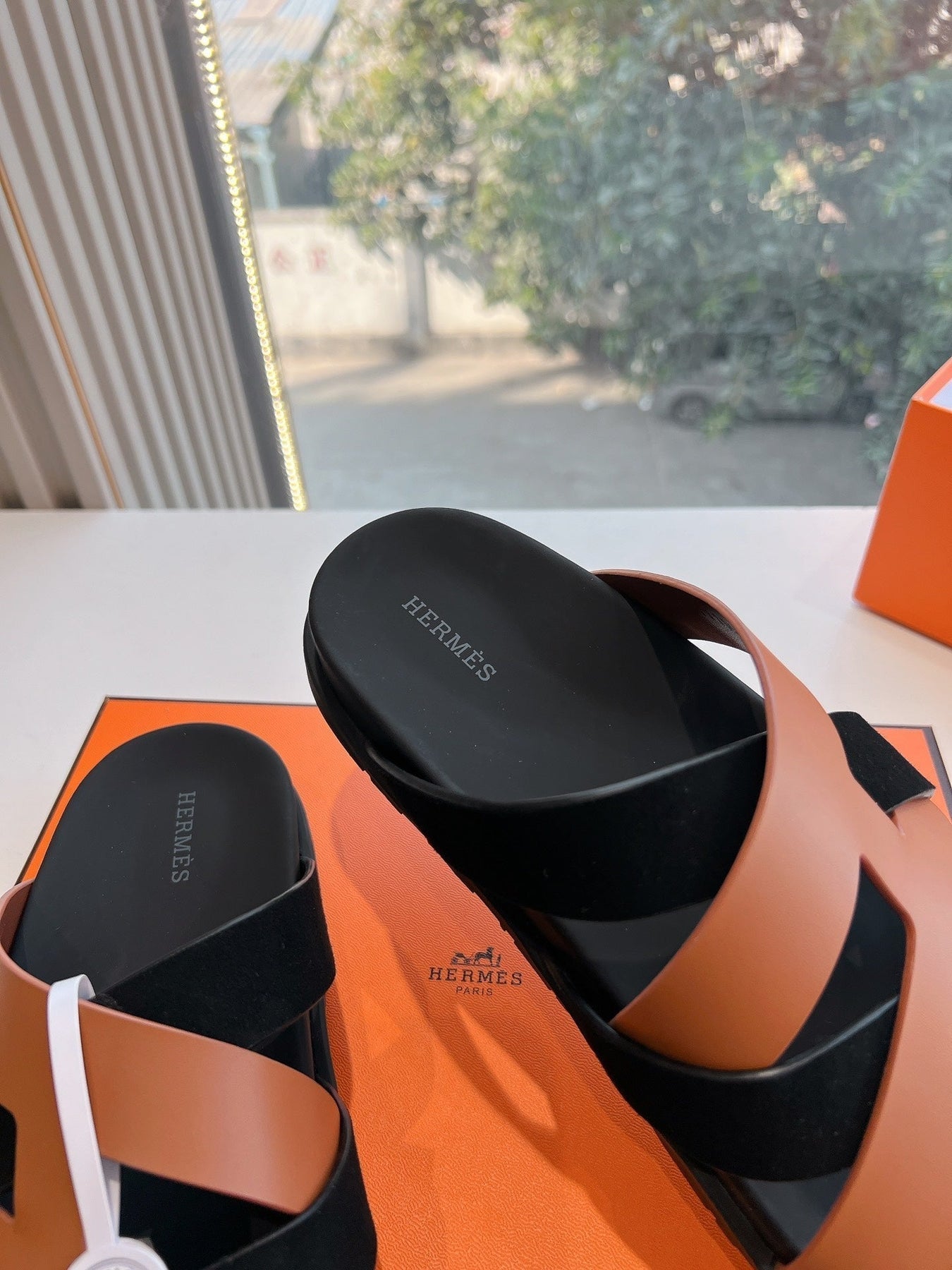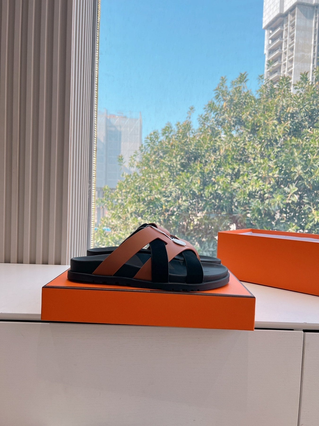 KAZIMIR SANDAL IN BRONZE BROWN CALFSKIN AND BLACK SUEDE