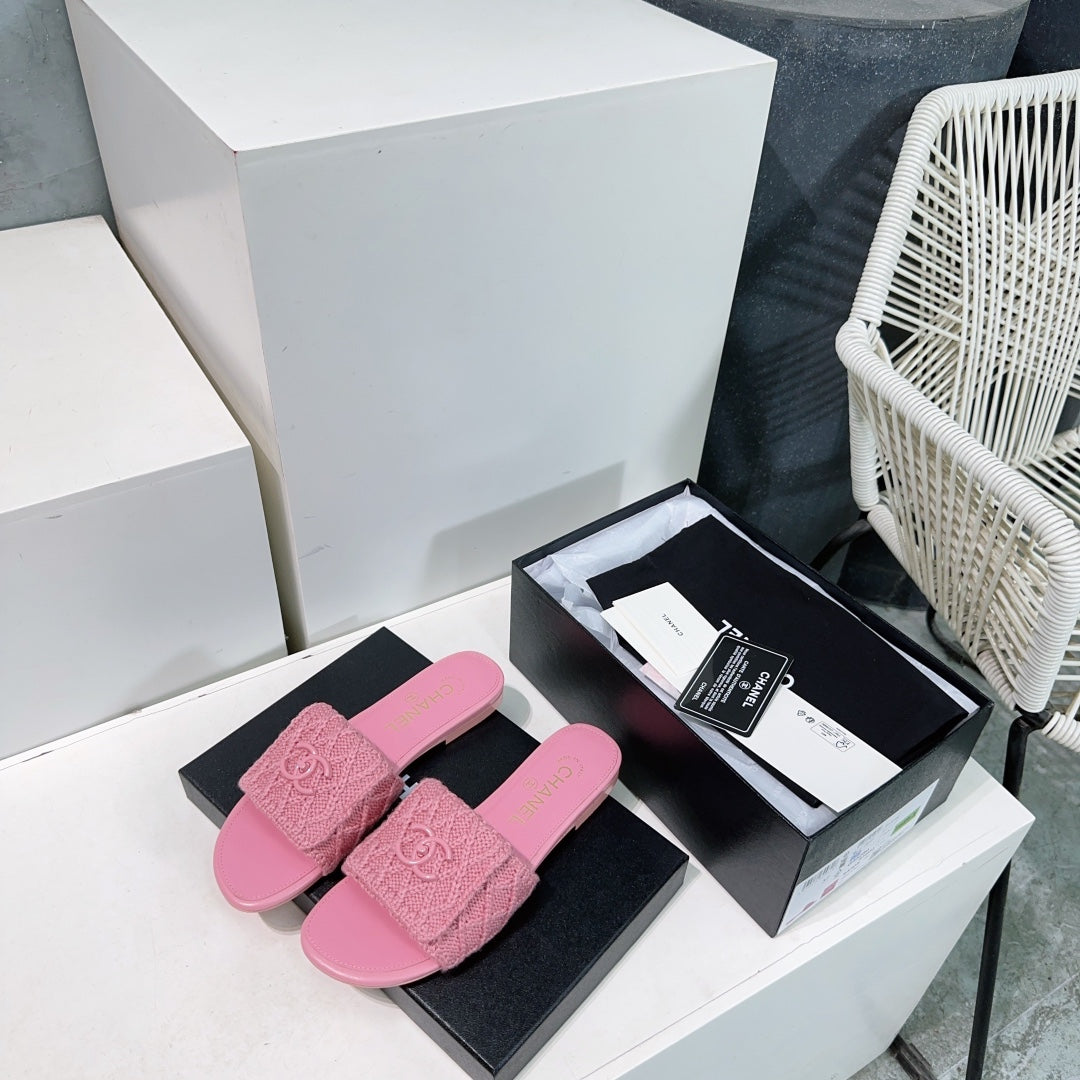 KNIT TAFFY PINK FABRIC FLAT SLIDE