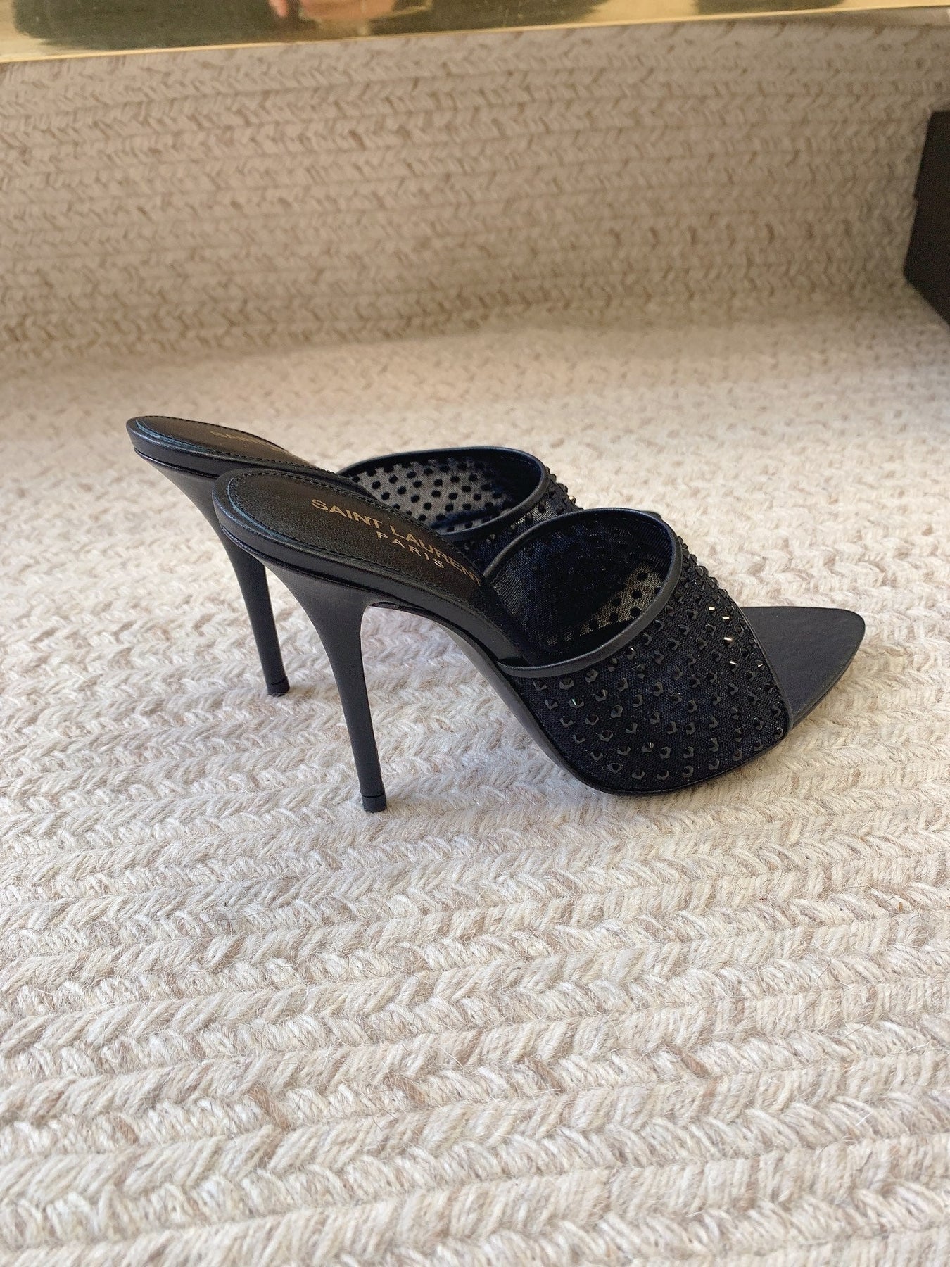 LA 16 HEELED MULES ATTACHED RHINESTONES IN BLACK MESH
