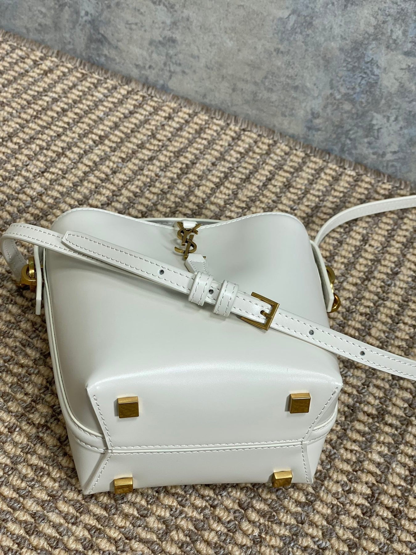 LE 37 MINI BUCKET BAG 15 IN WHITE CALFSKIN GOLD HARDWARE