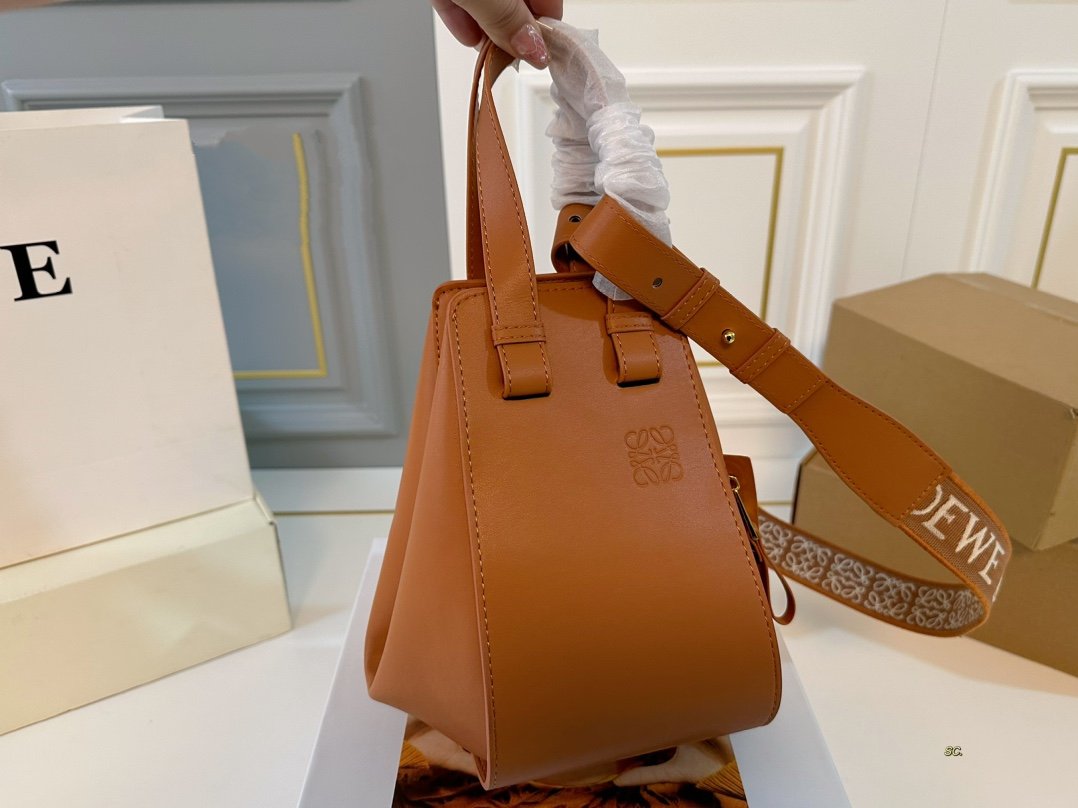 LOE 25 COMPACT HAMMOCK BAG IN OAK SATIN CALFSKIN