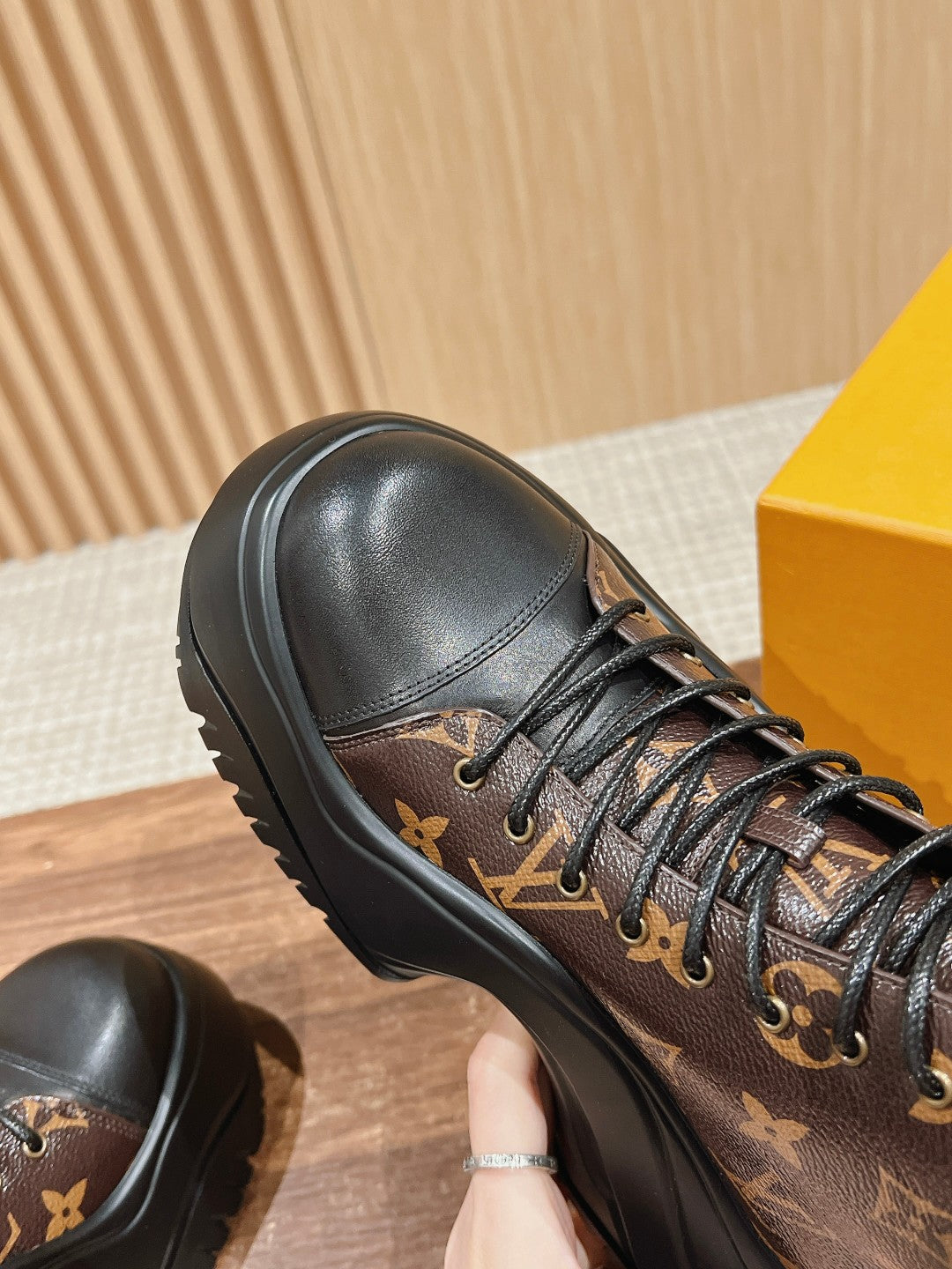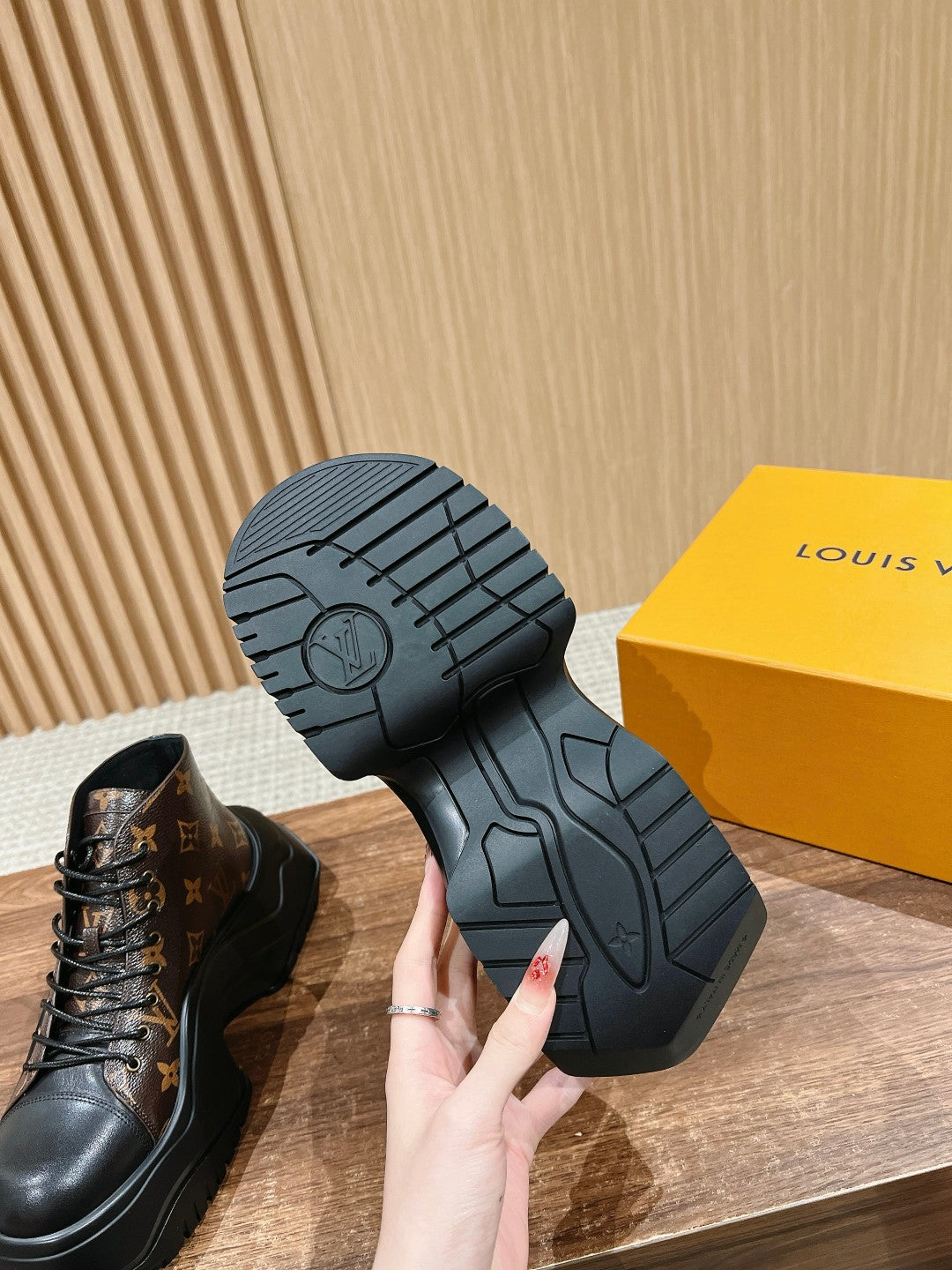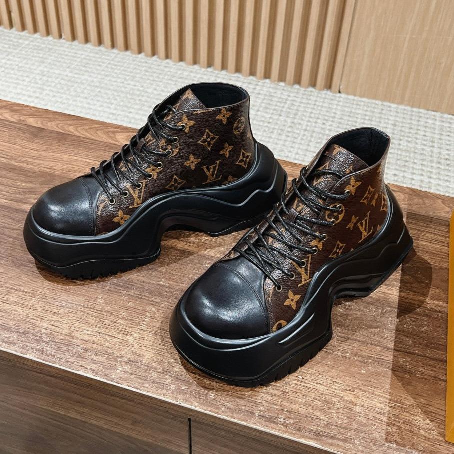 LV WOMEN CHELSEA BOOT IN BLACK MIX CHOCOLATE BROWN MONOGRAM CALFSKIN