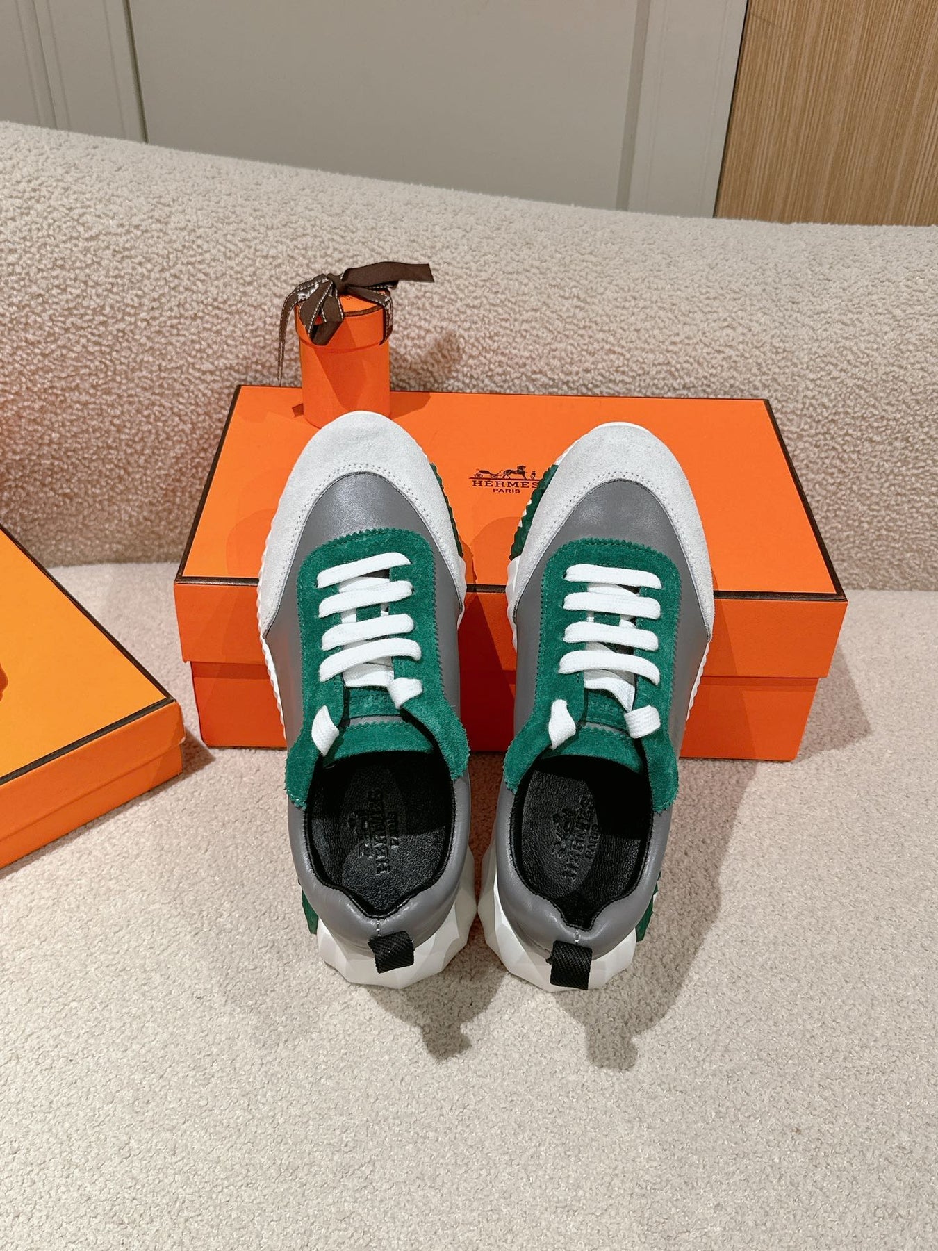 MAINLAND SNEAKER IN PALE GRAY SUEDE AND MOUSE GRAY CALFSKIN