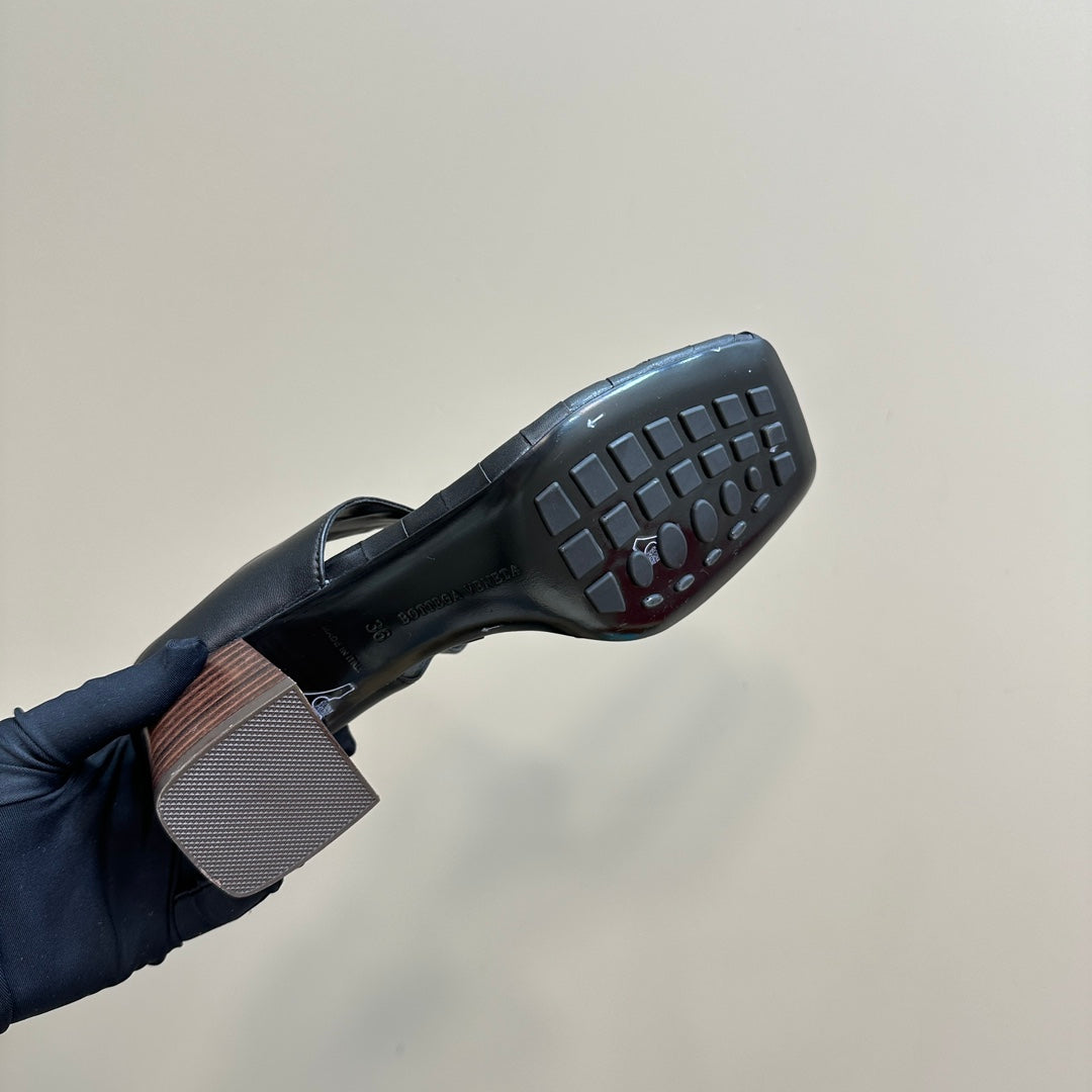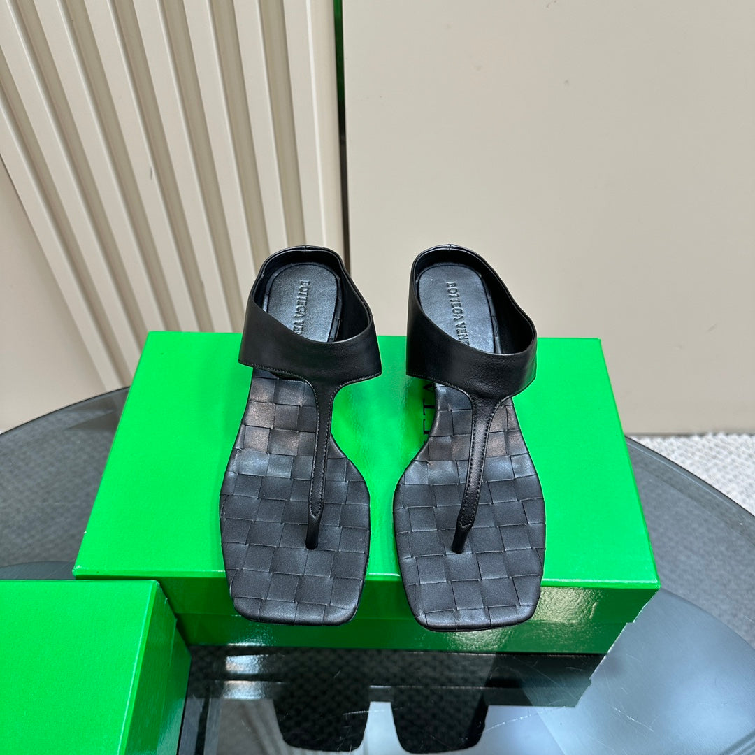 MARELLA THONG IN BLACK LEATHER WITH SIGNATURE INTRECCIATO INSOLE 55 MM