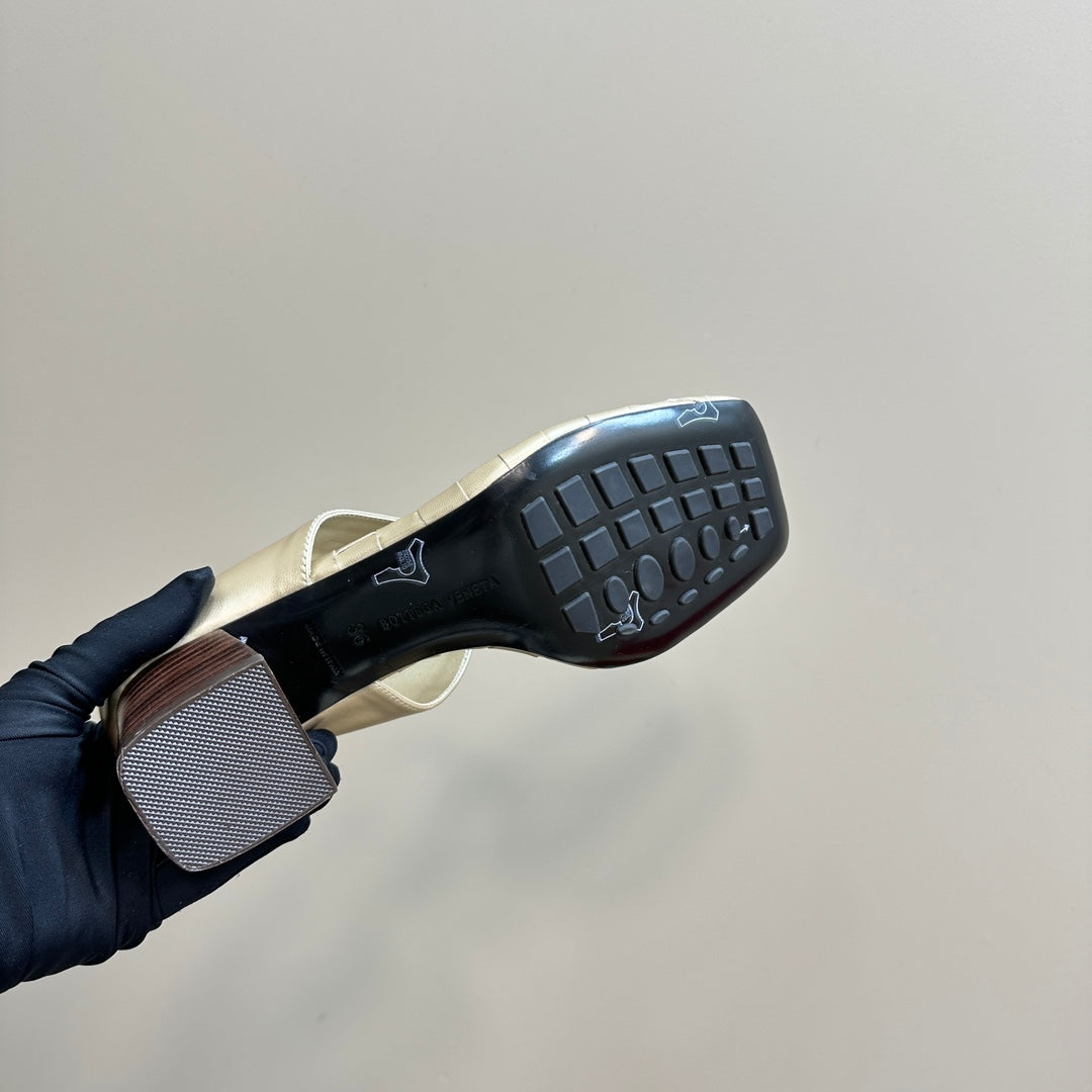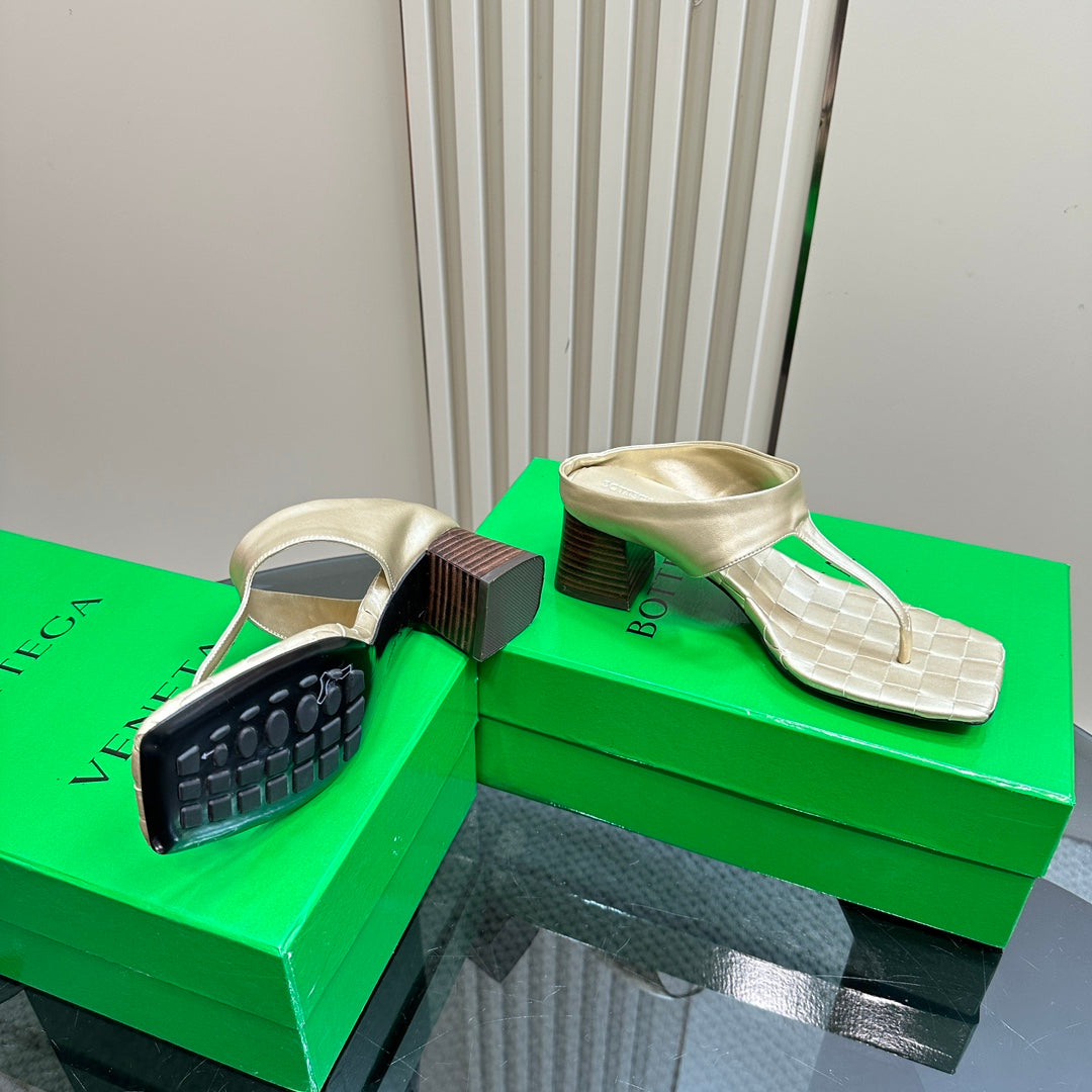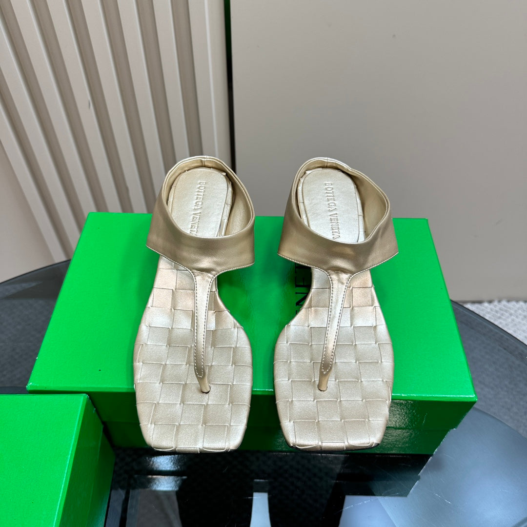 MARELLA THONG IN LIGHT GOLD LEATHER WITH SIGNATURE INTRECCIATO INSOLE 55 MM