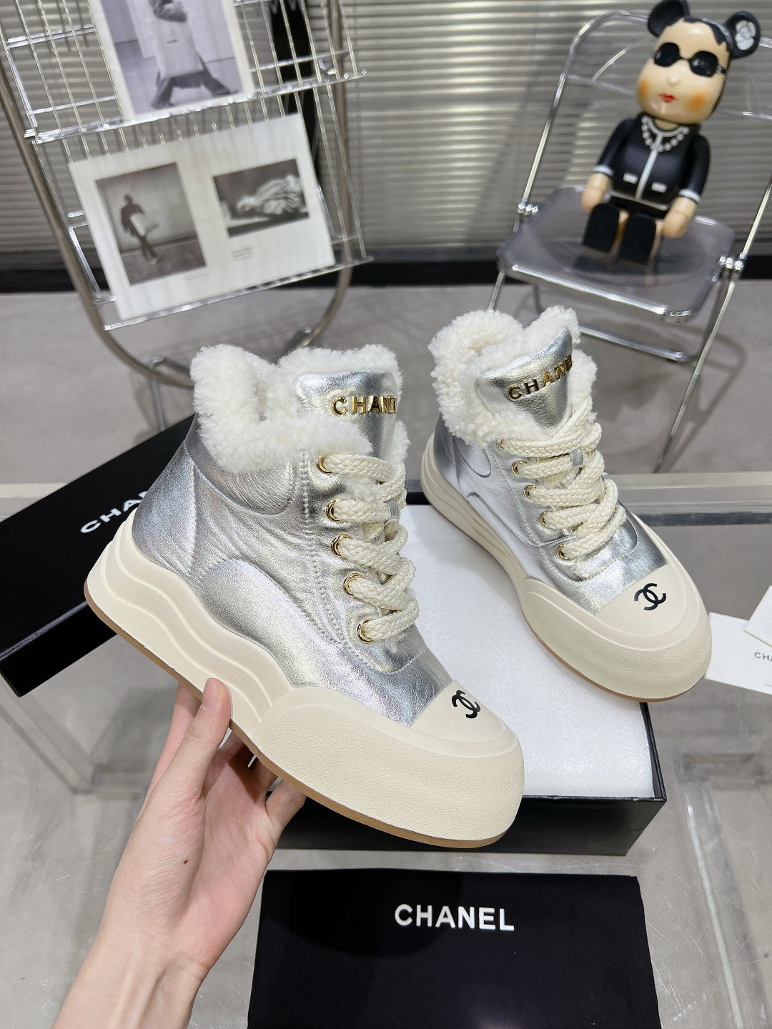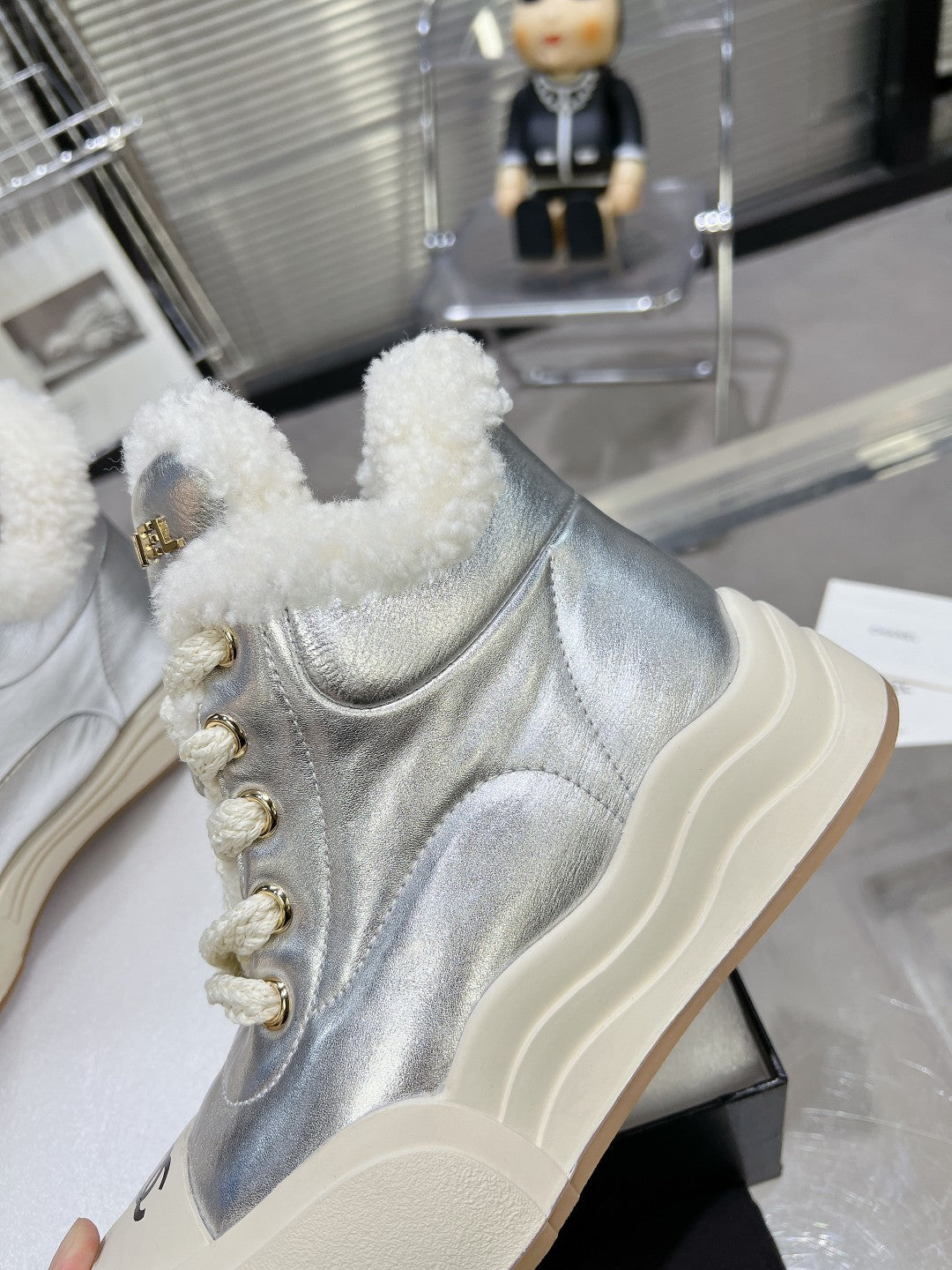 MARTIN BOOTS IN SILVER CALFSKIN AND LAMB FUR LINING