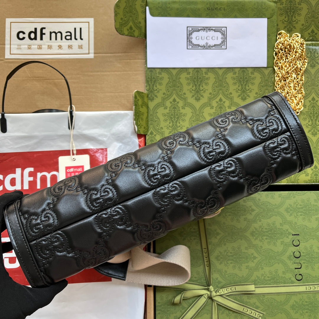MATELASSÉ SHOULDER BAG 32 IN BLACK EMBOSSED CALFSKIN GOLD HARDWARE