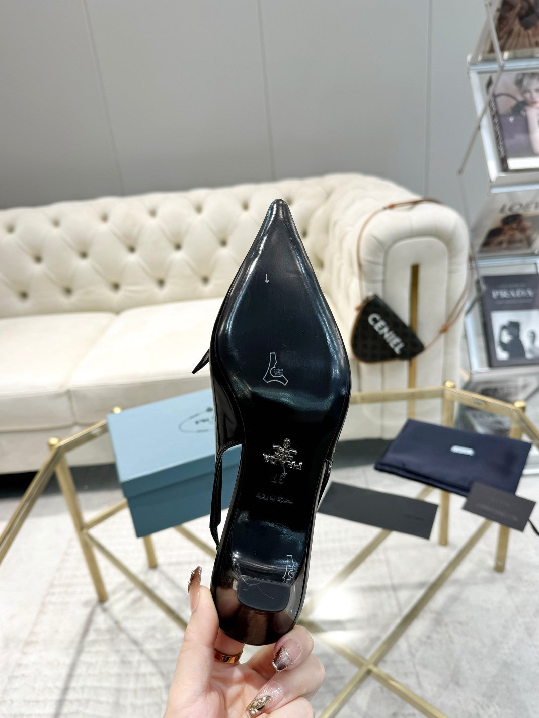MEDIUM HEEL SLINGBACK ATTACHED CREATIVE FLOWERS IN BLACK PATENT CALFSKIN