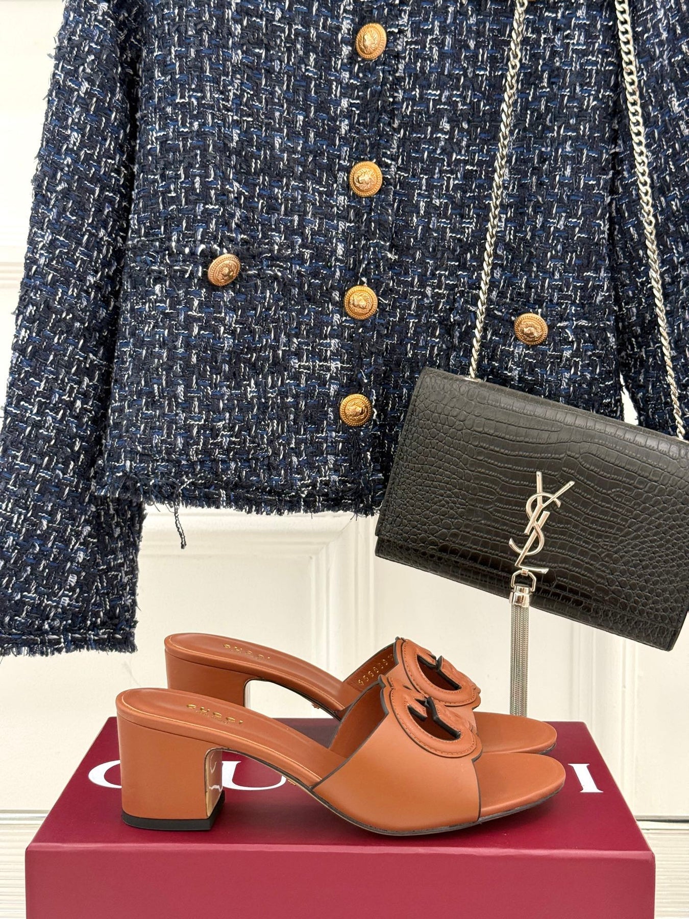 MID-HEEL MULE IN RUST BROWN CALFSKIN