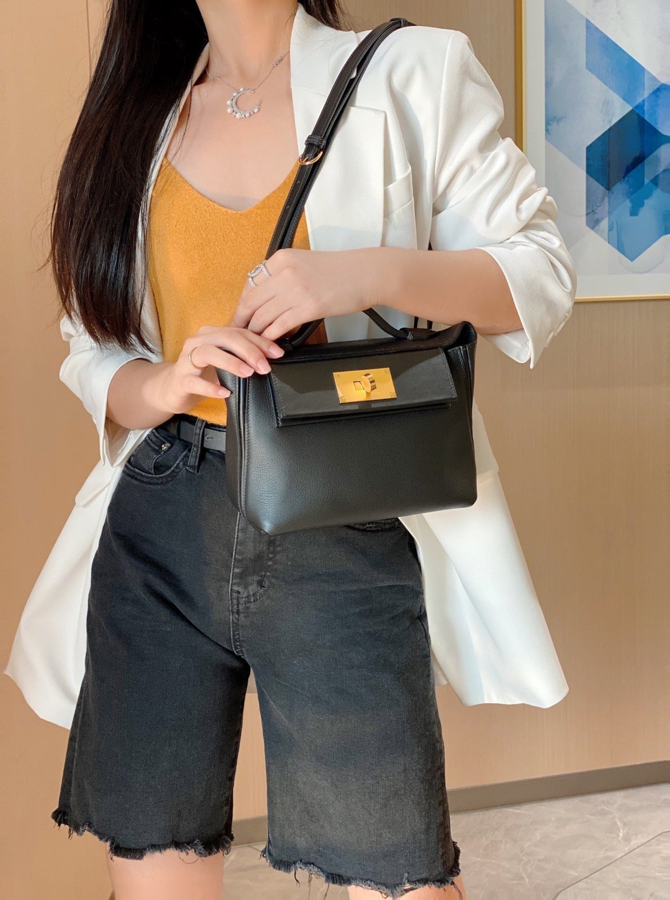MINI 24/24 21CM IN BLACK EVERCOLOR CALFSKIN GOLD KELLY BUCKLE