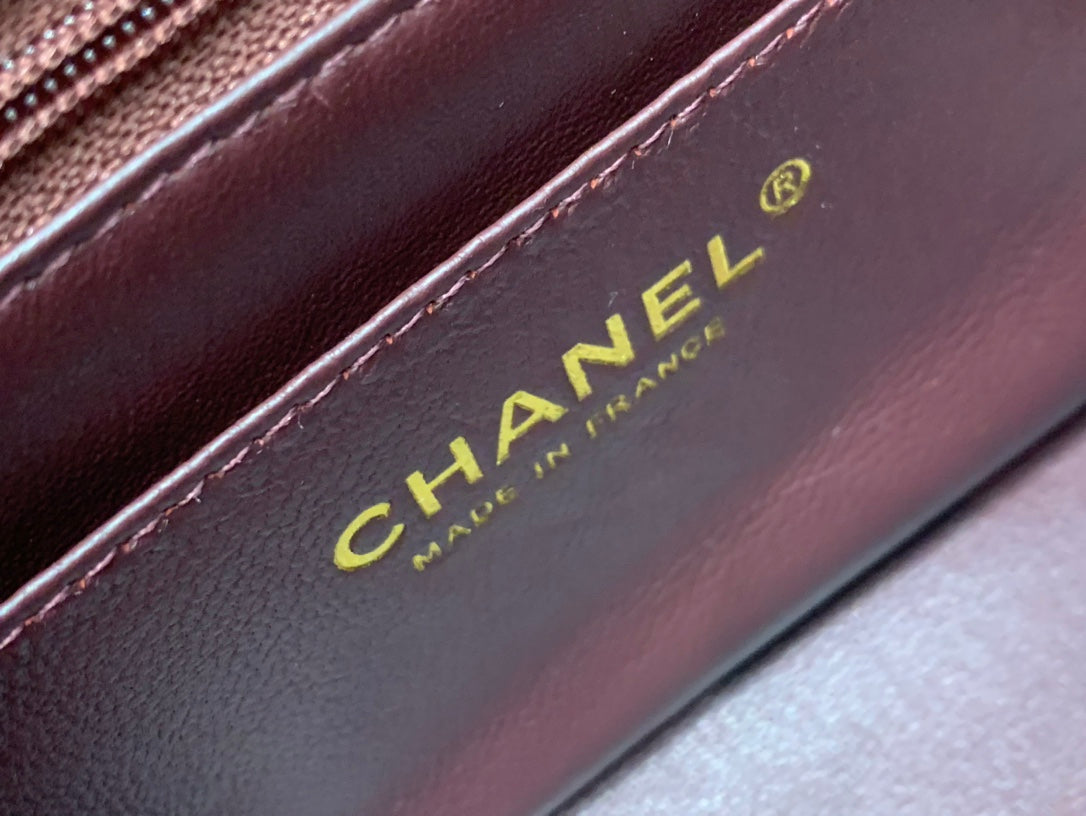MINI SQUARE FLAP BAG 17CM CHOCOLATE CAVIAR GOLD HARDWARE