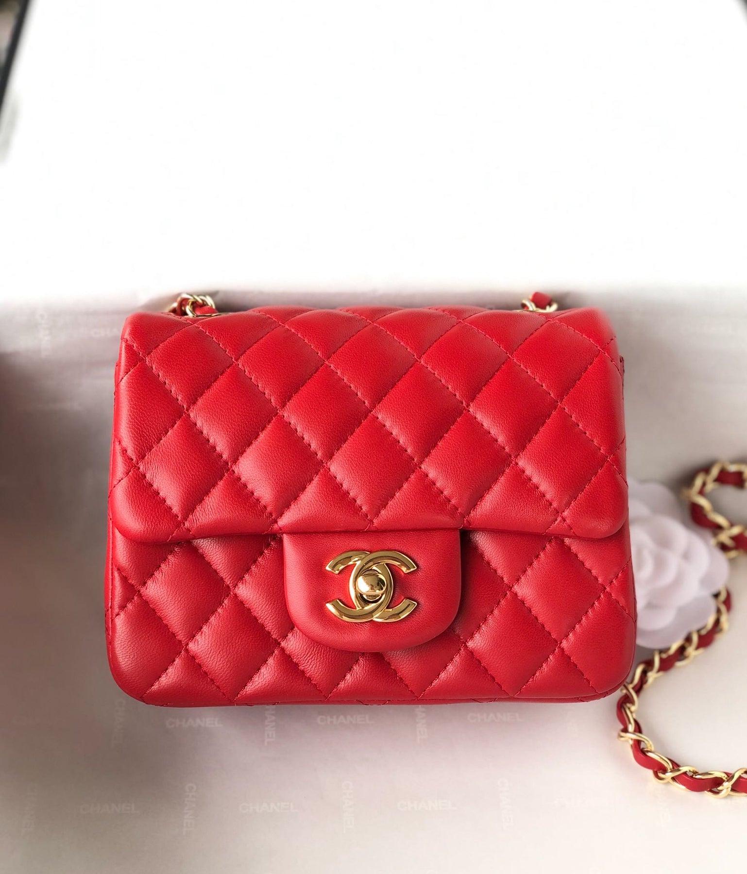 MINI SQUARE FLAP BAG 17CM RED LAMBSKIN GOLD HARDWARE