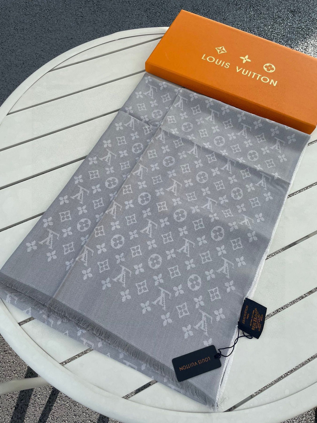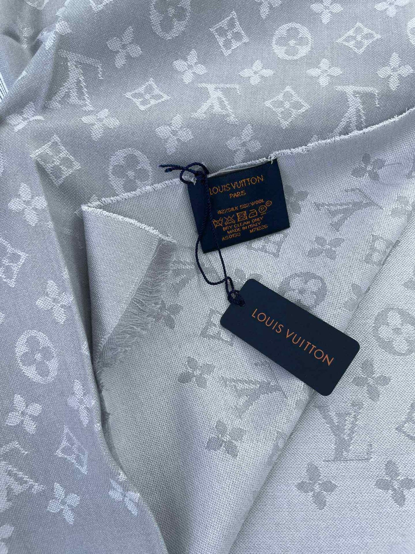 MONOGRAM SCARF 200 CM IN LIGHT GRAY CASHMERE AND SILK 388079